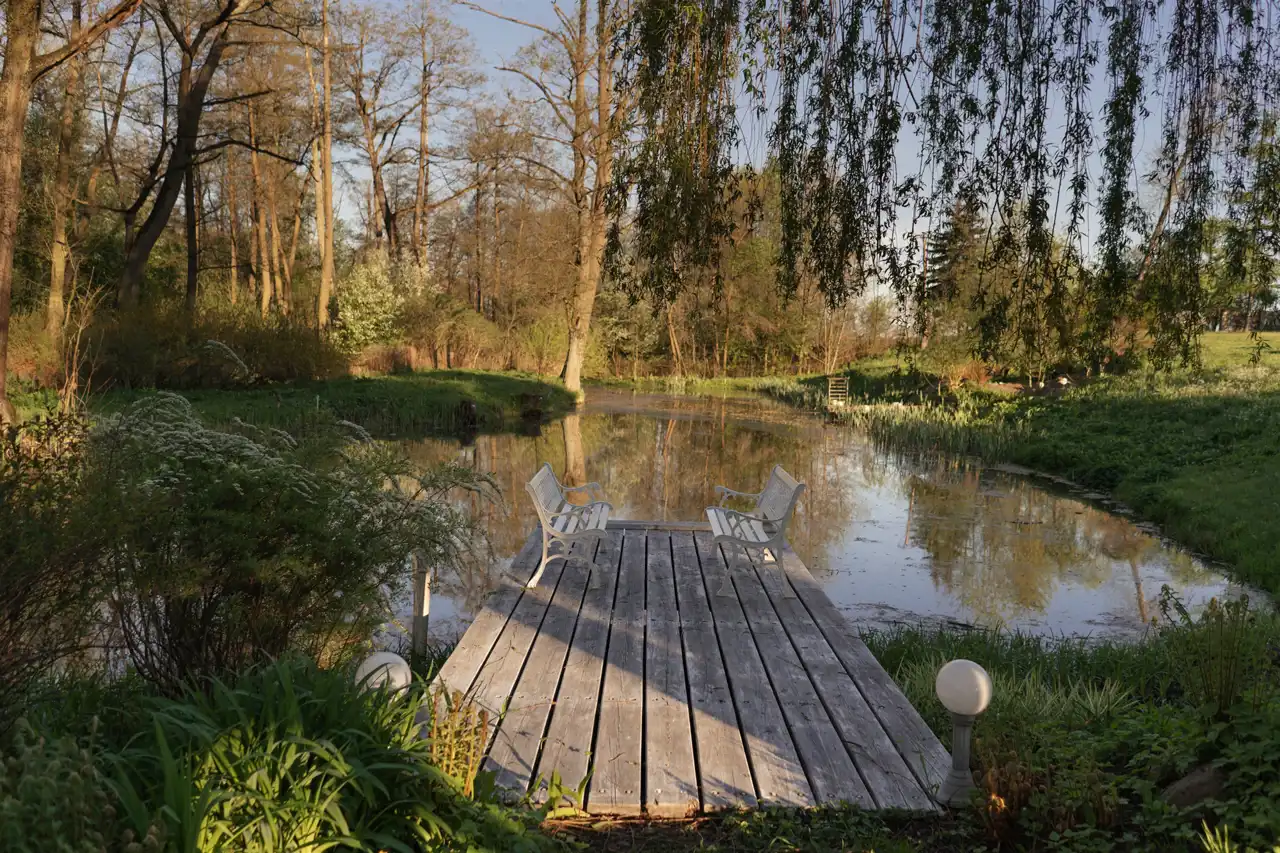 staw oraz altanę grillową z miejscem ogniskowym,