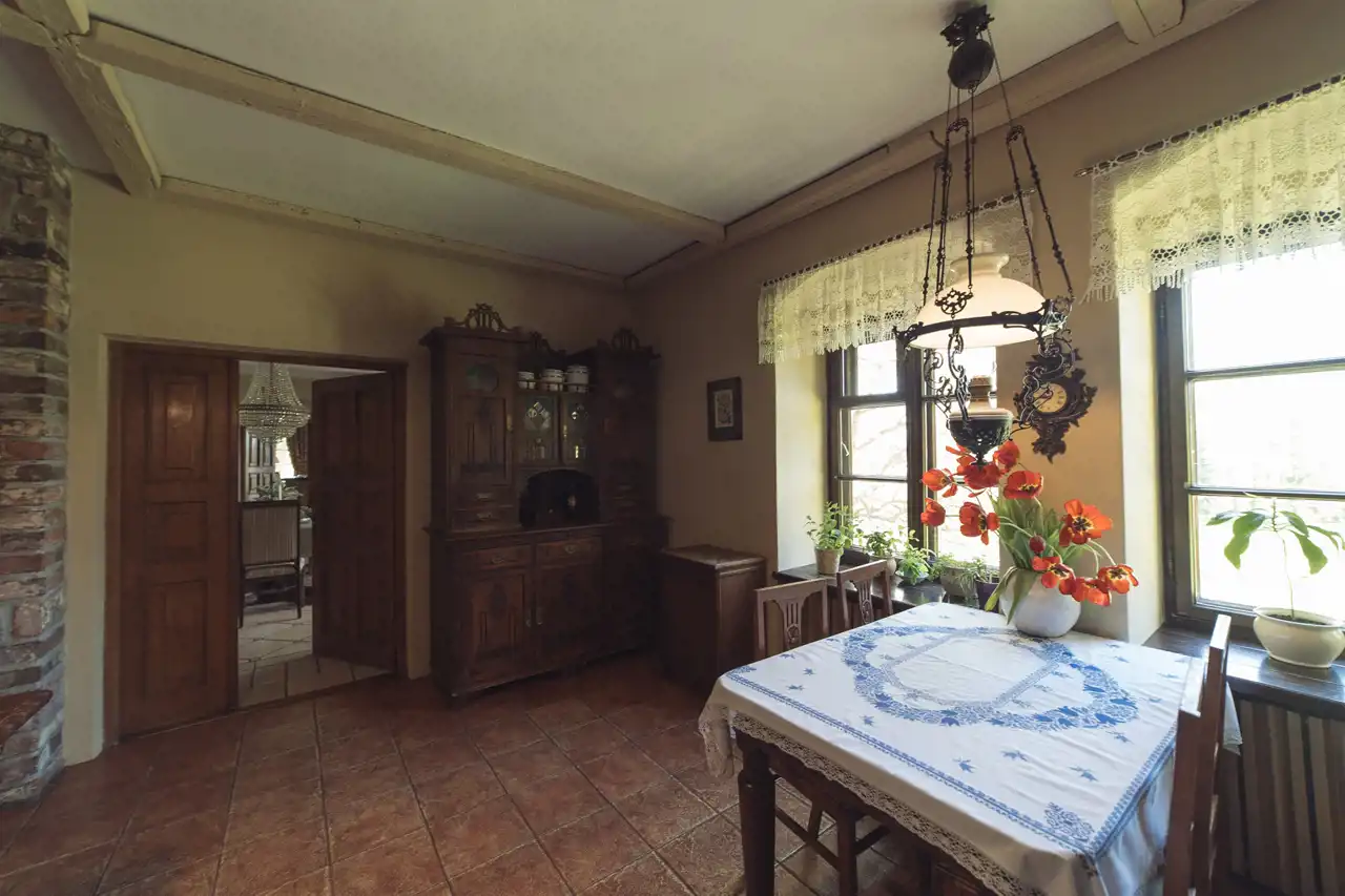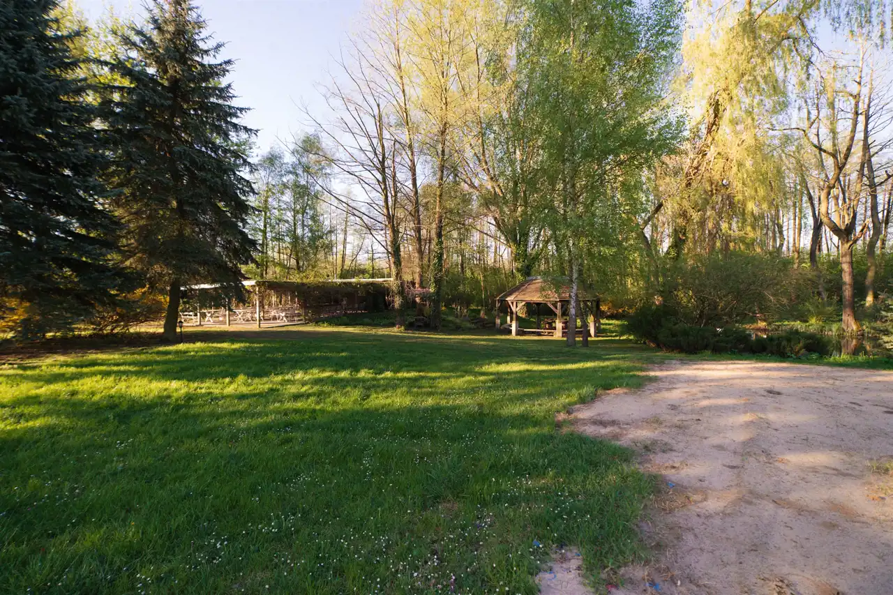 Przedmiotem sprzedaży jest pięknie zagospodarowany, XVIII-wieczny, odrestaurowany szlachecki dwór, wpisany do Centralnego Rejestru Zabytków, wraz z oficyną oraz budynkiem konferencyjno-restauracyjnym. Całość tworzy wyjątkowy, reprezentacyjny kompleks o ogromnym potencjale biznesowym i prestiżowym charakterze.