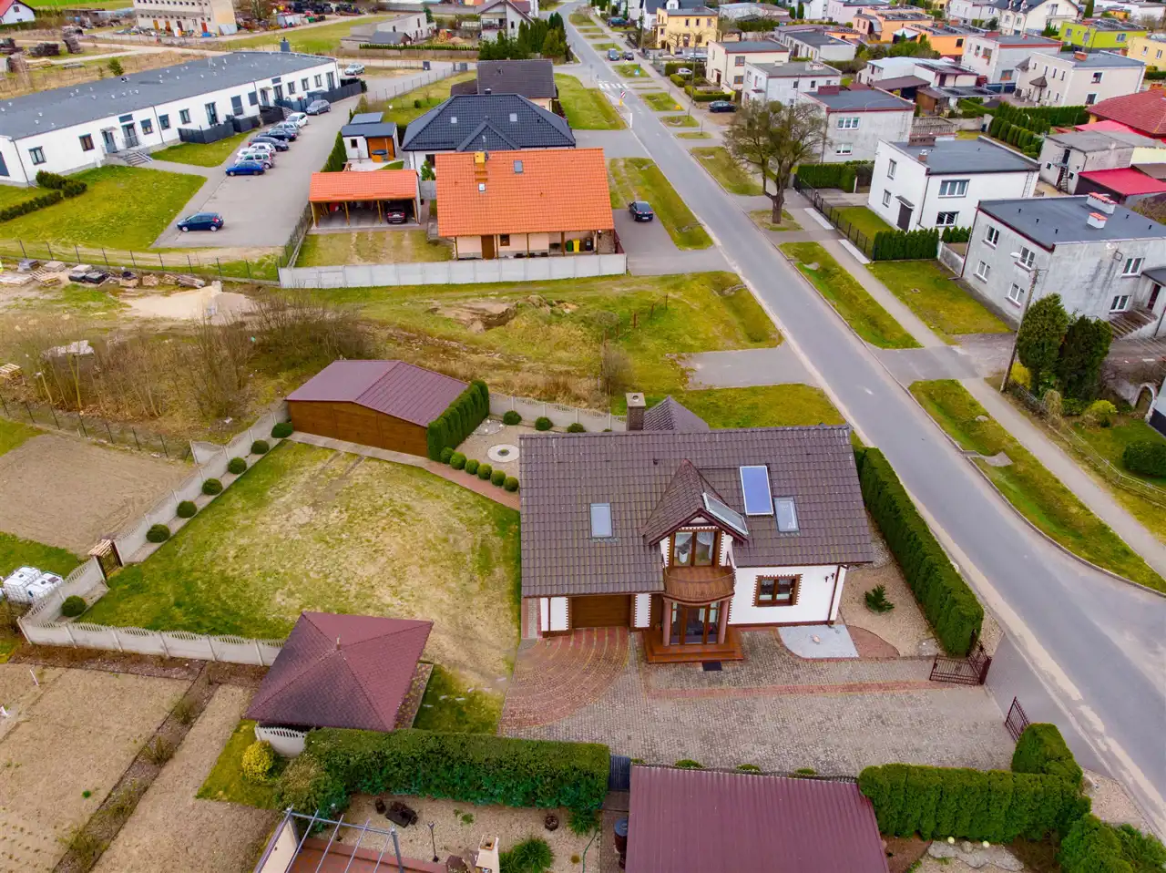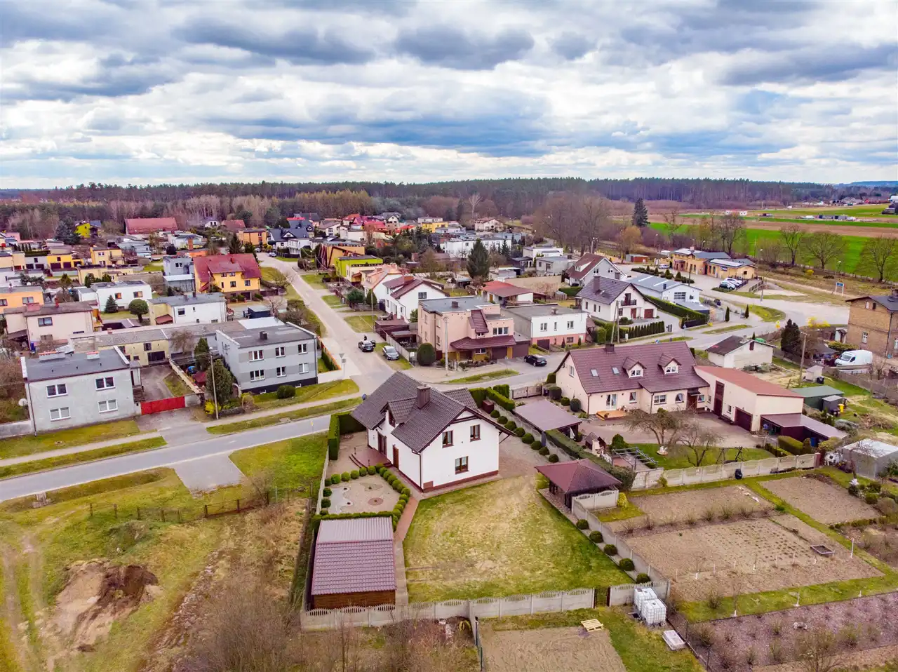 Działka o pow. 1103m2 zagospodarowana, z rekreacyjną wiatą oraz dodatkowo wolnostojącym dwustanowiskowym garażem (budynkiem gospodarczym). Cześć działki wyłożona polbrukiem, cześć z zielonymi nasadzeniami