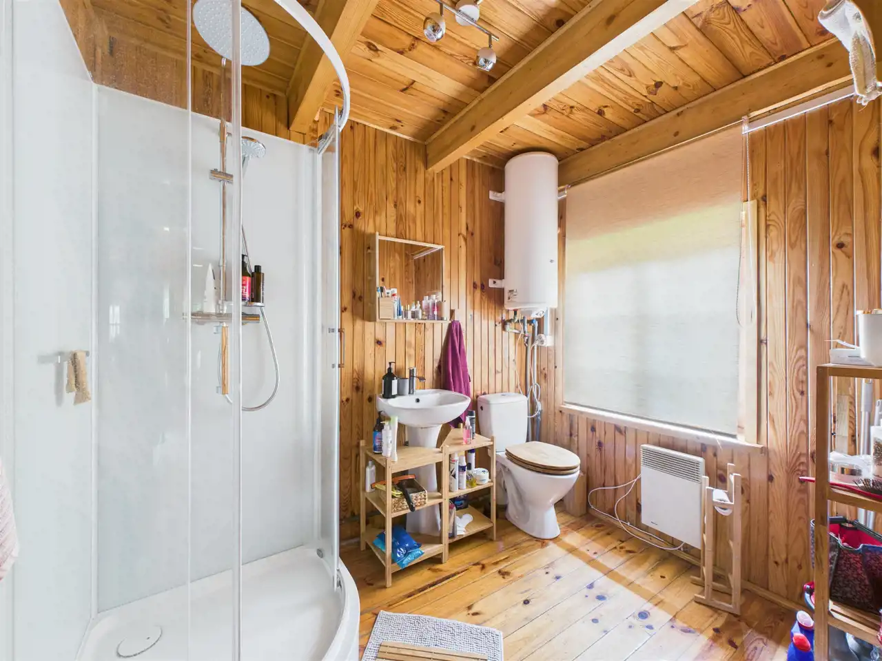 Domek letniskowy został wzniesiony w technologii drewniano-szkieletowej i przystosowany do użytkowania sezonowego lub całorocznego (po ewentualnym doposażeniu w system ogrzewania).