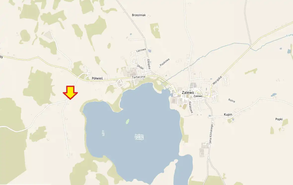 Położenie na uboczu 1,5 km od miasta Zalewo. Ciesz się prywatnością i spokojem, jednocześnie mając dostęp do infrastruktury miasta Zalewo.