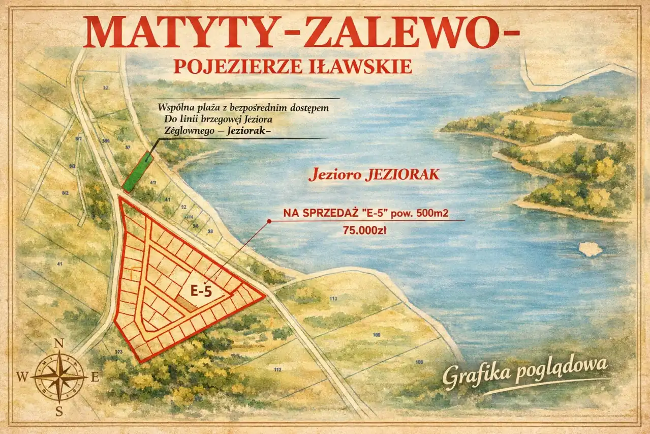 Działka 500 m² w Matytach nad Jeziorakiem — z własną linią brzegową (9 m)! w cenie 75.000zł