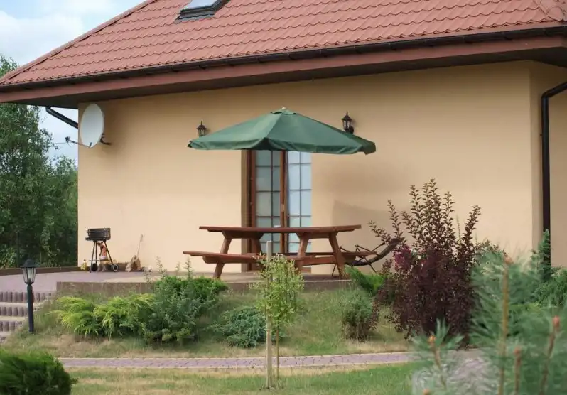 Nieruchomość znajduje się w miejscowości Załuski około 35 km od granic Warszawy, 39 km od stacji metra Młociny. Budynek wybudowano w 2009 roku w technologii tradycyjnej, starannie, w dobrym standardzie. Na parterze jest przedsionek 3,3m2,hol 8,1m2,kuchnia 11,2m2 urządzona i wyposażona( w cenie),oddzielona od salonu barkiem, pokój dzienny 28m2 z kominkiem i wyjściem na duży taras i do ogrodu (od południowej strony)), 2 pokoje (13,5m2 i 11,8m2), łazienka 6,7m2,garaż 26,2m2 na 1 samochód (brama na pilota), garderoba 4,7m2, kotłownia 6m2,pomieszczenie gospodarcze 12m2 i schowek 1,2m2. Na piętrze są 4 sypialnie (11,8m2,11,4m2, 15,1m2, 10,6m2), łazienka 6,1m2 i strych 5,9m2.W budynku jest ogrzewanie podłogowe i grzejnikowe, instalacja centralnego odkurzania. Na działce jest przydomowa ekologiczna oczyszczalnia ścieków. Dom jest bezpieczny - drzwi i okna antywłamaniowe, alarm z monitoringiem. Działka ładnie zagospodarowana i ogrodzona, z bramą wjazdową otwieraną automatycznie. W najbliższym sąsiedztwie nieliczna zabudowa, cisza, spokój, niedaleko las i liczne tereny rekreacyjne: nad Wisłą, Wkrą i Zalewem Zegrzyńskim.