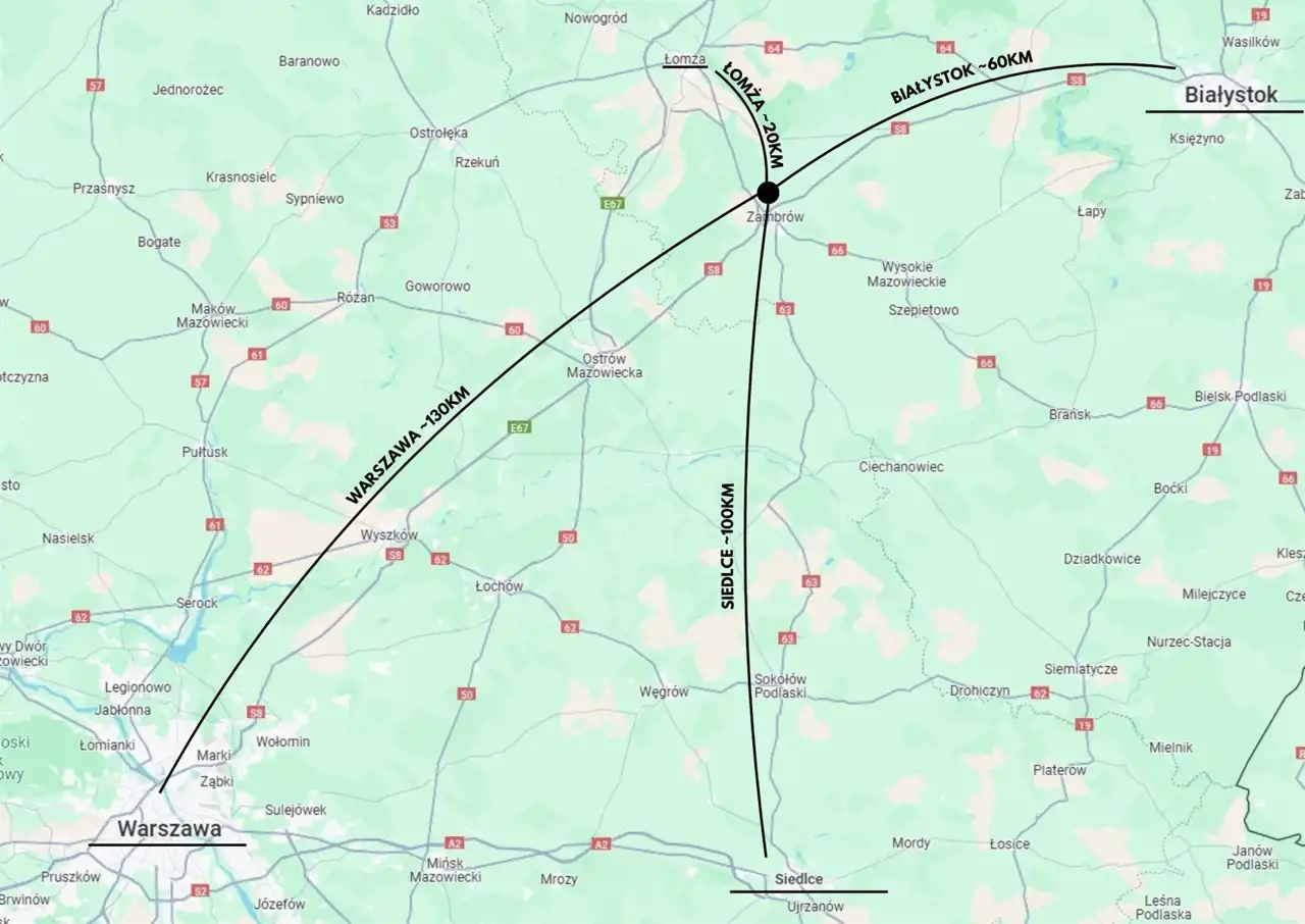 - łatwy wyjazd na drogę S8 oraz DK63 w kierunku Łomży,