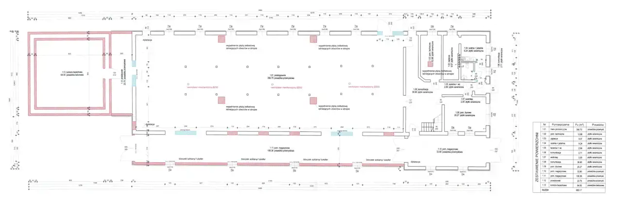 - Powierzchnia użytkowa 1152m2 (rozkład pomieszczeń wraz z powierzchniami pokazano na zdjęciach)