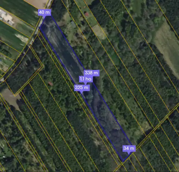 Wymiary; 32 metry od frontu x 320 metrów długości
