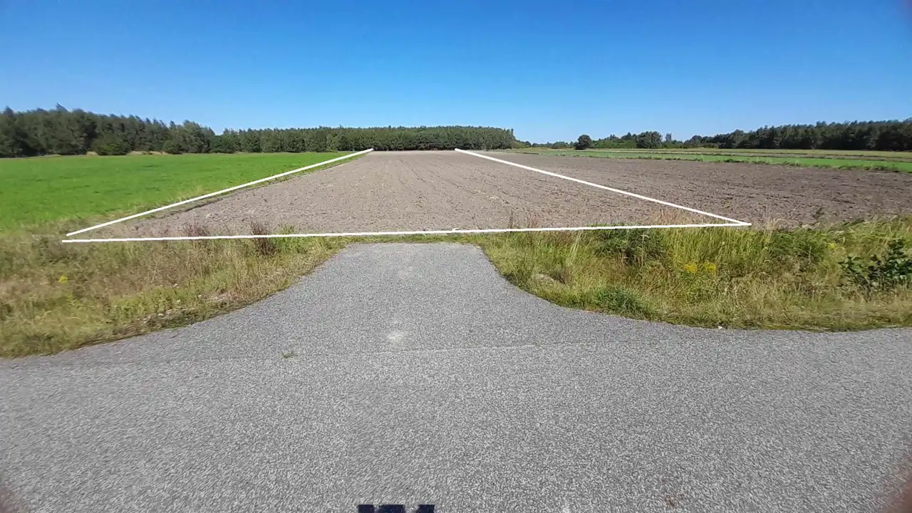 Działka jest szeroka 35 metrów, można ją spróbować podzielić na mniejsze lub kupić na powiększenie własnego gospodarstwa