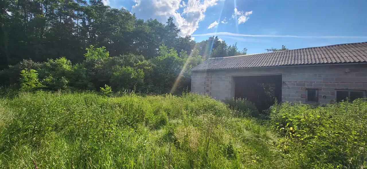 Dom/budynek w stanie do remontu. Teren częściowo ogrodzony. Ogród do zagospodarowania, brama wjazdowa, liczne nasadzenia i samosiejki. Las po przeciwnej stronie ulicy. Nieruchomość do sprzedania z uwzględnieniem czasu na podział i założenie KW.