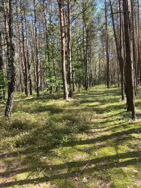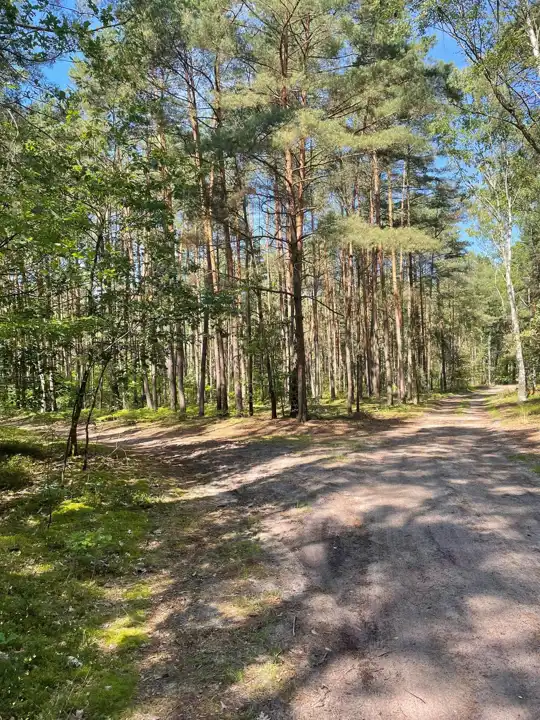 Działka położona w lesie idealna dla osób które cenią sobie ciszę oraz bliskość natury.