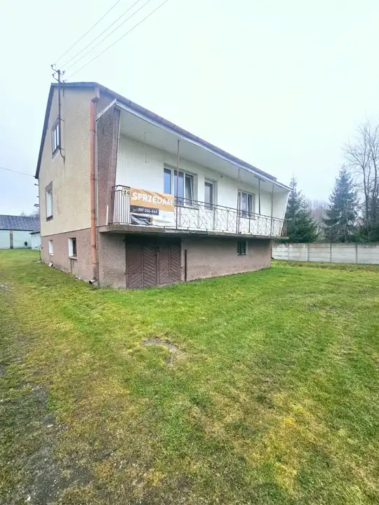 Dom został wybudowany w latach 80-tych , jego powierzchnia zabudowy wynosi 100m². Budynek wybudowany z cegły i suporexu. Składa się z trzech pokoi o pow. 18,40m2, 23,40m2, 19,10m2, kuchni o pow. 14m2, , spiżarki o pow. 2,7m2, pomieszczenie na łazienkę o pow. 2,1m2, wiatrołap o pow. 7,15m2, korytarz o pow. 6m2. Okna są z PCV, wymienione w 2002 roku, natomiast w piwnicy są okna drewniane. Poddasze domu nie jest ocieplone, strop jest lany. Dach domu pokryty jest blachą. . Dom jest do generalnego remontu, od 15 lat niezamieszkiwany.