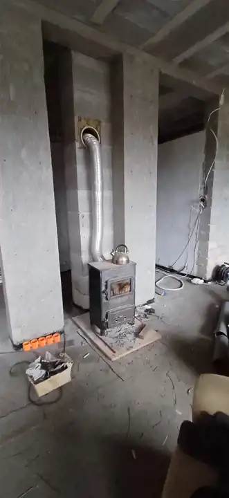 Na dole, w salonie, na czas wykańczania wnętrz zamontowano piecyk typu koza, w miejscu tym można zamontować w przyszłości wolnostojący kominek, który ociepli i umili mieszkańcom pobyt w tych przestronnych wnętrzach.