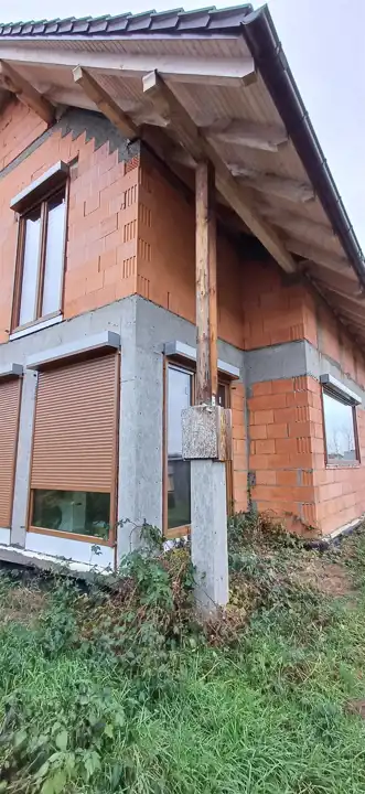 Dom wybudowany z materiałów wysokiej jakości, m.in. pustak ceramiczny, pokrycie dachu- dachówka ceramiczna. Okna 3-szybowe; zarówno na parterze, jak i wyższej kondygnacji zabezpieczone zewnętrznymi roletami anty-włamaniowymi.