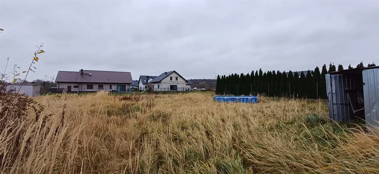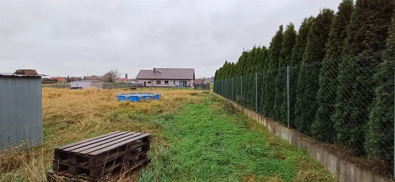 Pokaźna działka, 16 arów, częściowo ogrodzona. Na jej terenie dokonano przygotowania gruntu- wylewka z izolacją- pod budowę wolnostojącego budynku, który może posłużyć za np. dodatkowy garaż, lub być przeznaczony na inne cele.