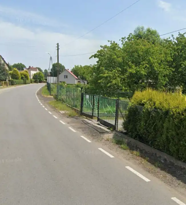 Działka o pow. 4272 m2, w kształcie dwóch trapezów: od frontu 37 m, dostęp do drogi publiczej, asfaltowej, z bezpośrednim wjazdem na teren działki.