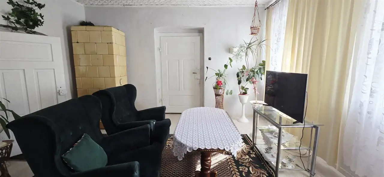 - Media Ogrzewanie: piec kaflowy; Woda: jest; Gaz: brak