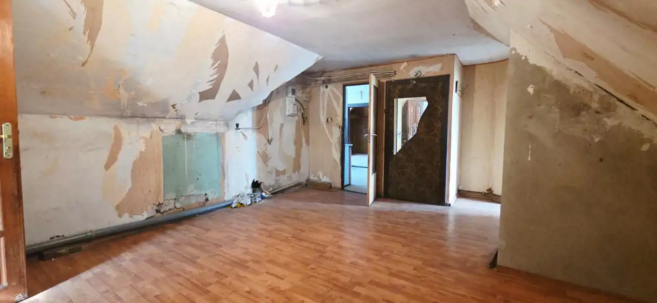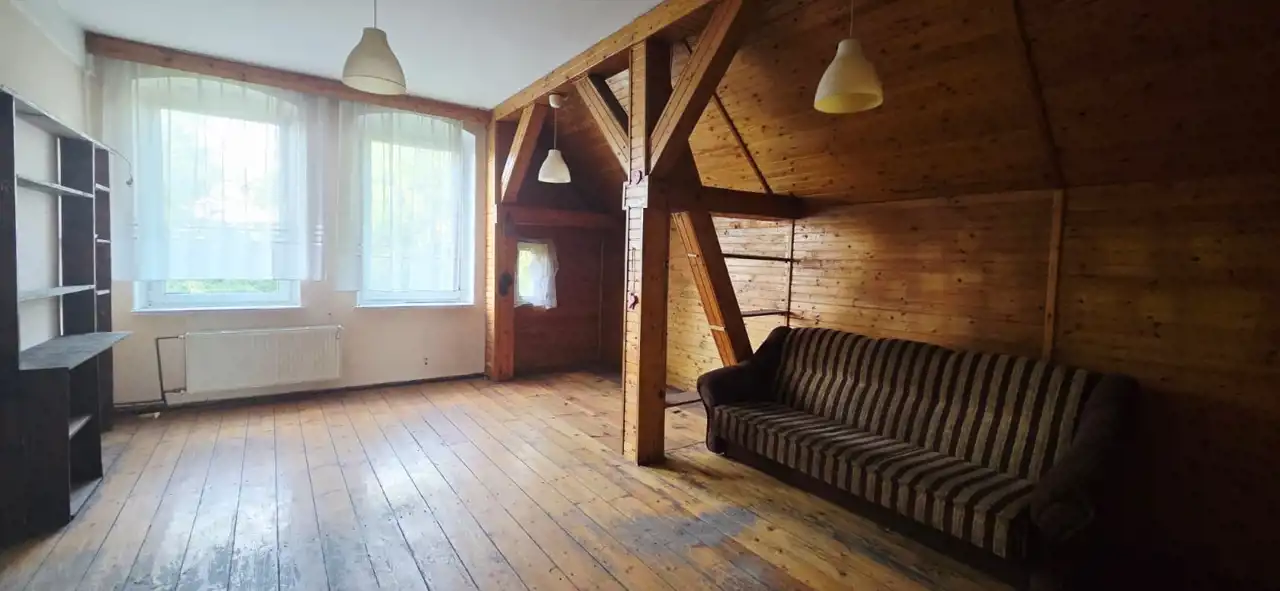 Układ pomieszczeń: 3 pokoje, kuchnia, łazienka, przedpokój + strych do adaptacji