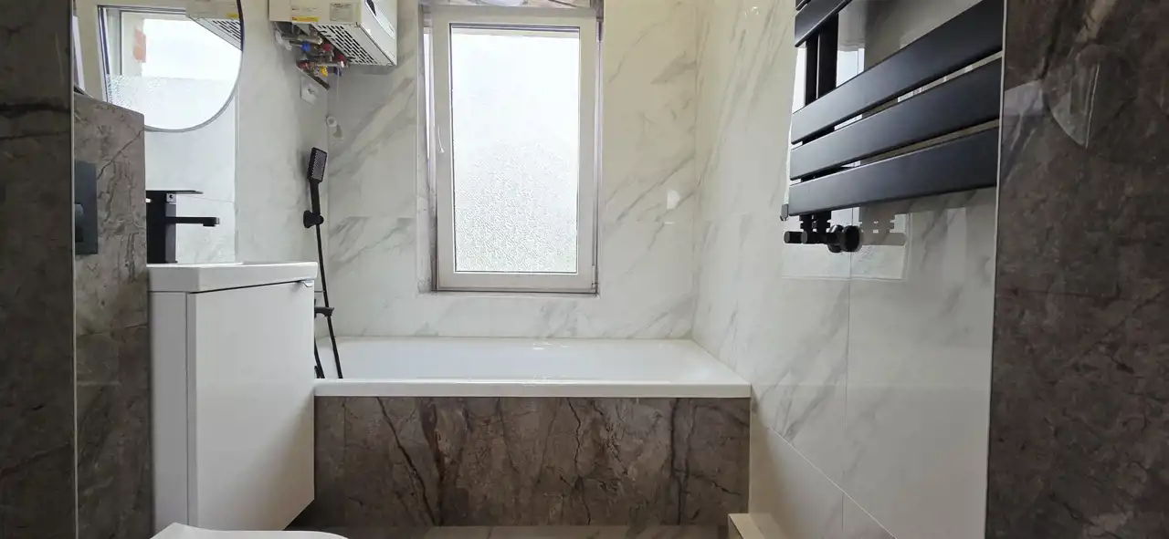 Nowa łazienka – świeżo wykończona w nowoczesnym stylu,