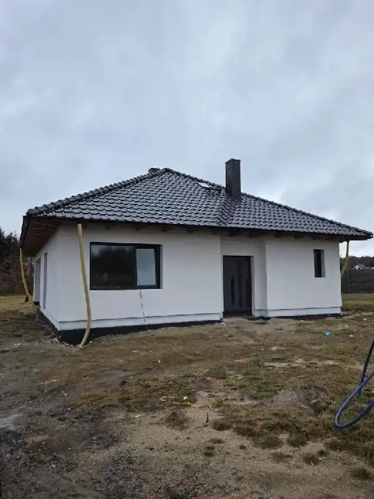 Standard wykonania : budynek ocieplony , dachówka ceramiczna , okna 3szybowe , wykonane tynki wewnętrzne , rozprowadzona instalacja elektryczna , ogrzewanie podłogowe w całym domu, instalacja przystosowana pod piec na pellet , rozprowadzona rekuperacja pod budynkiem , opaska drenażowa wokół budynku.