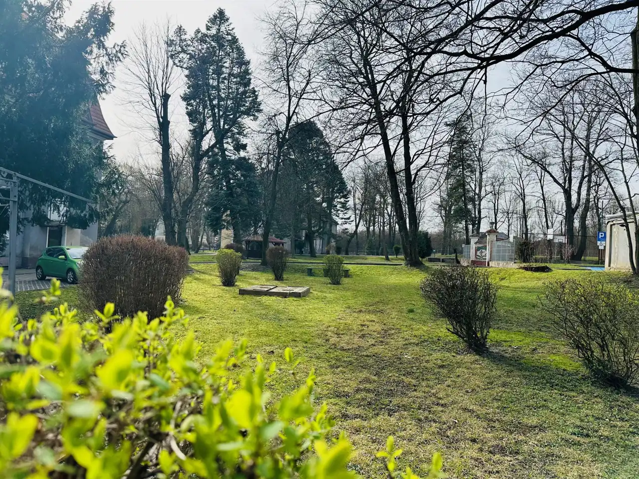 Budynek po remoncie, nowy dach, wyremontowana klatka, zdrowa elewacja. Wokół teren zieleni parkowej.