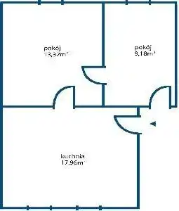 Podana cena to cena orientacyjna. W dniu ogłoszenia przetargu zostanie podana cena wywoławcza.Lokal składa się z pokoi o powierzchni 13,32 m² i 9,18 m² oraz dużej, jasnej kuchni (17,96 m²).