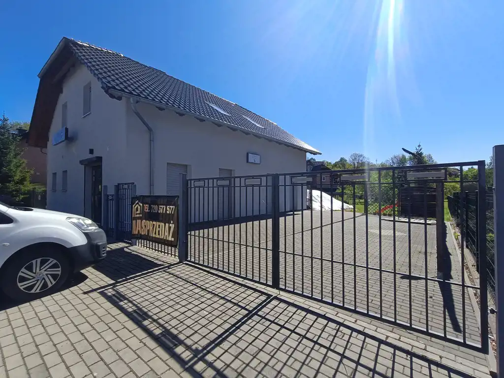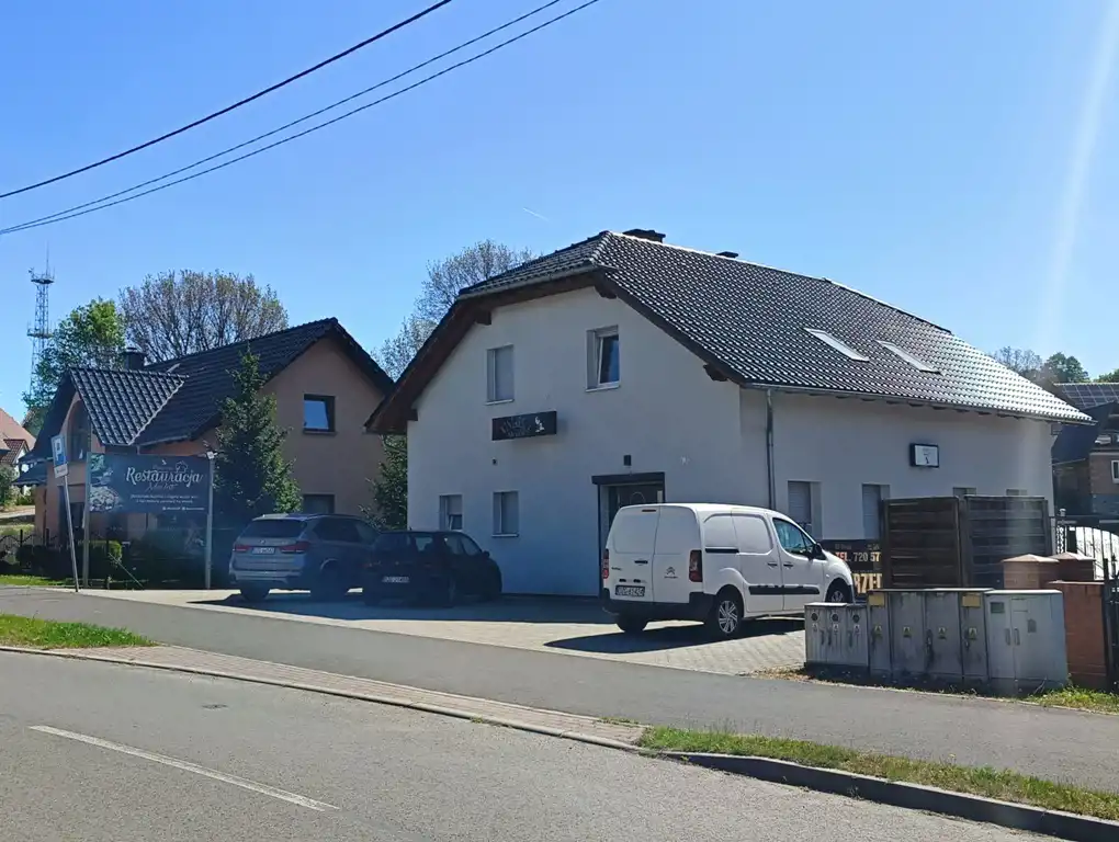 Do sprzedania rozwojowa nieruchomość położona w Zawidowie przy ul. Skłodowskiej-Curie. Przedmiotem sprzedaży jest budynek handlowo usługowy w którym funkcjonowała restauracja i winiarnia. Nowy budynek z 2018 roku, dwukondygnacyjny o powierzchni użytkowej 170,58 m2. Parter stanowi główne pomieszczenie restauracji z bezpośrednim wejściem do pomieszczenia poniżej poziomu gruntu przystosowanego do przechowywania wina. Oprócz tego parter stanowi pomieszczenie kuchenne, toalety, kotłownię oraz klatkę schodową z wejściem z zewnątrz prowadzącą na poddasze. Poddasze to dwie niezależne funkcjonalnie części mieszkalne. Każde z mieszkań obejmuje pokój dzienny z aneksem kuchennym, sypialnię, łazienkę oraz przedpokój. Budynek wyposażony jest w instalację elektryczną, wodociągową, kanalizacyjną włączoną do sieci miejskiej oraz alarmową. Centralne ogrzewanie budynku zasilane piecem z podajnikiem na ekogroszek, dodatkowo w części restauracyjnej zamontowano klimatyzację. Budynek posadowiony jest na działce o powierzchni 889 m2. Teren jest ogrodzony, z dwoma bramami wjazdowymi. Część działki wyłożona kostką na parking dla klientów oraz stoliki. Nieruchomość z dużym potencjałem i możliwościami inwestycyjnymi. Położona w sąsiedztwie zabudowań jednorodzinnych przy nowo wyremontowanej ulicy w odległości 650 m od zrewitalizowanego rynku oraz 900 m od przejścia granicznego. W cenie nieruchomości nie uwzględniono umeblowania. Kompleksowe wyposażenie obiektu do uzgodnienia.