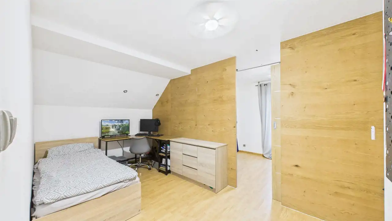 2 duże pokoje (jeden przedzielony ścianką – obecnie 3 pokoje)