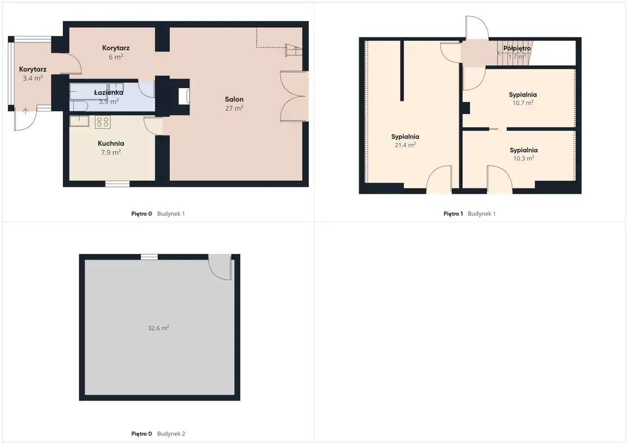 Funkcjonalny rozkład zapewnia komfort zarówno dla rodziny, jak i pary czy osób pracujących zdalnie.