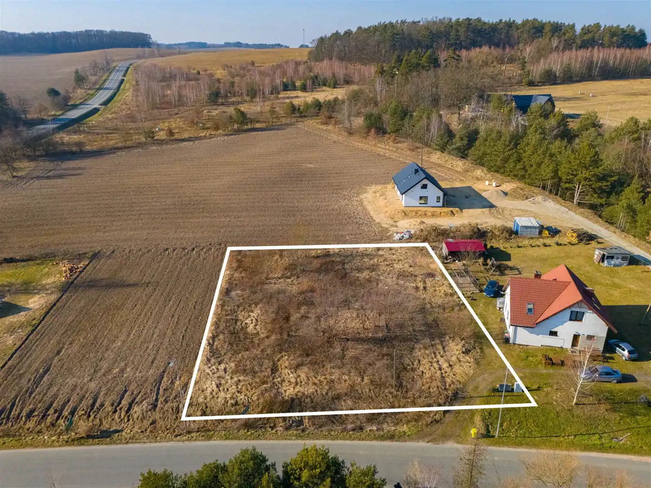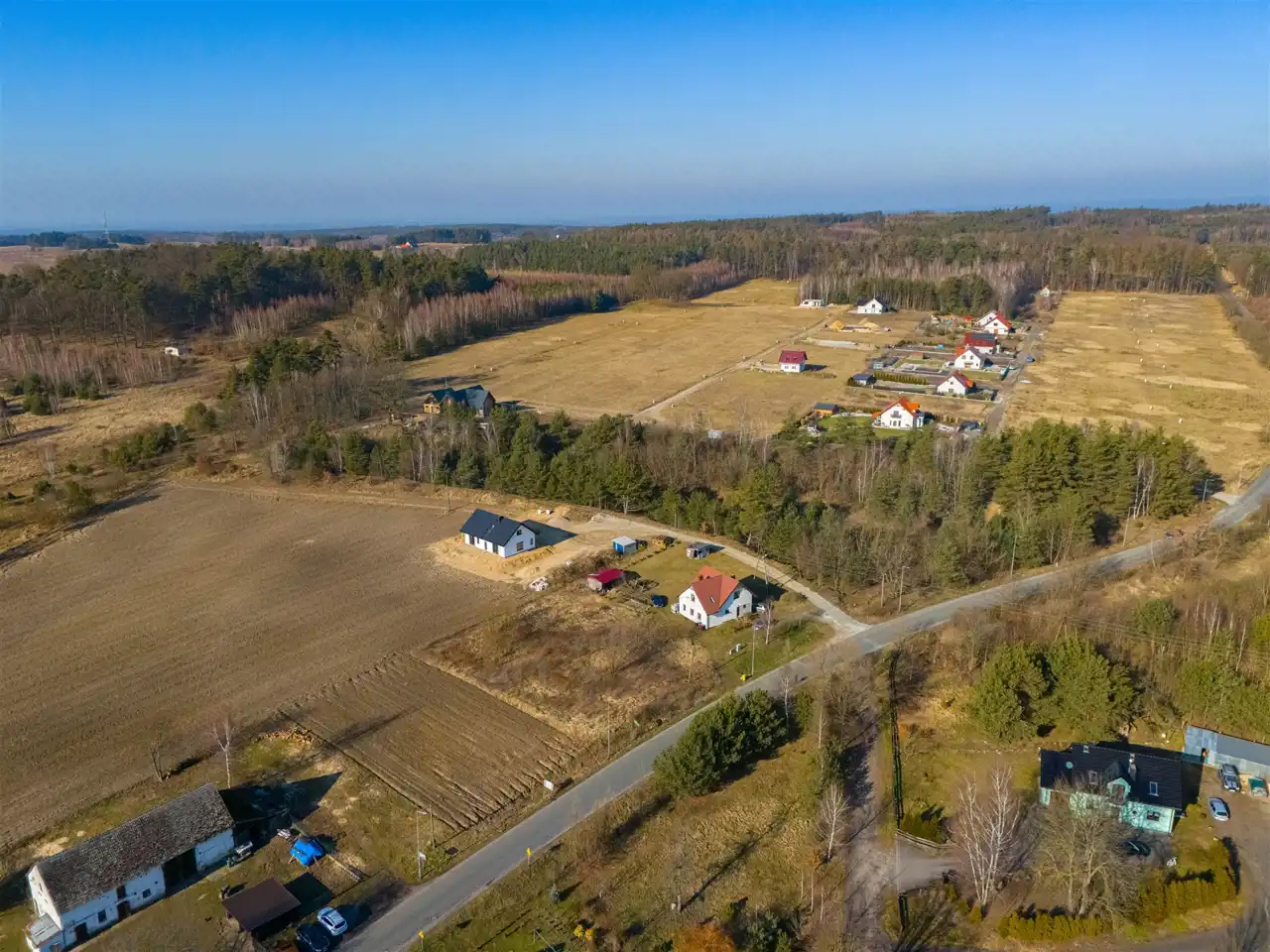 Media: woda i prąd w działce. Gaz w drodze w bliskiej odległości od działki.
