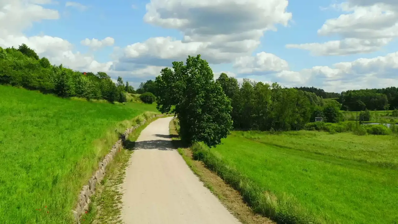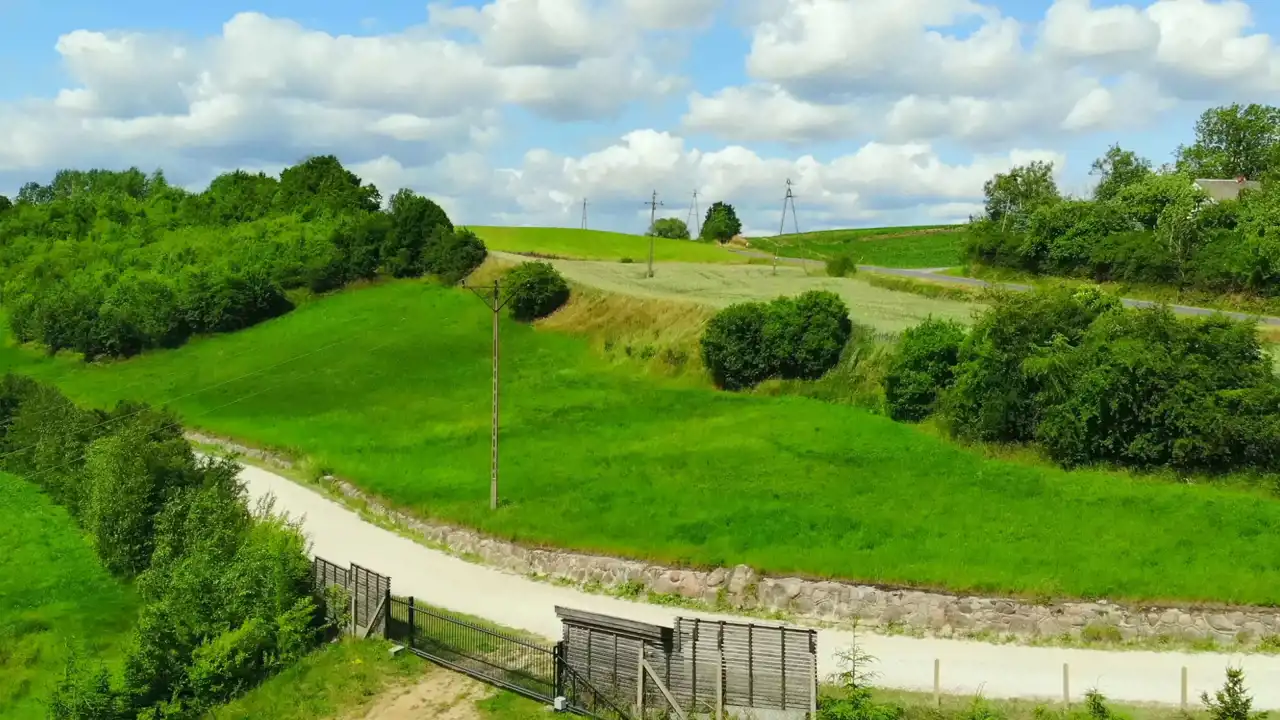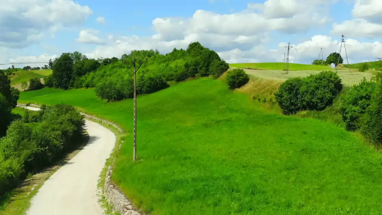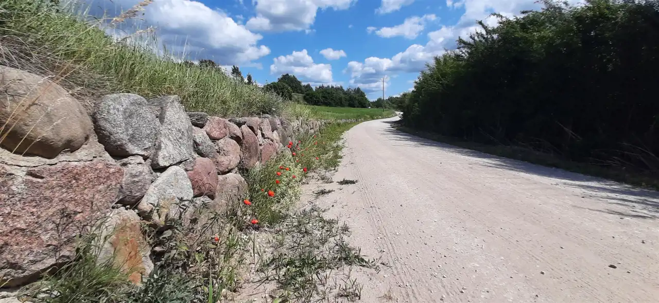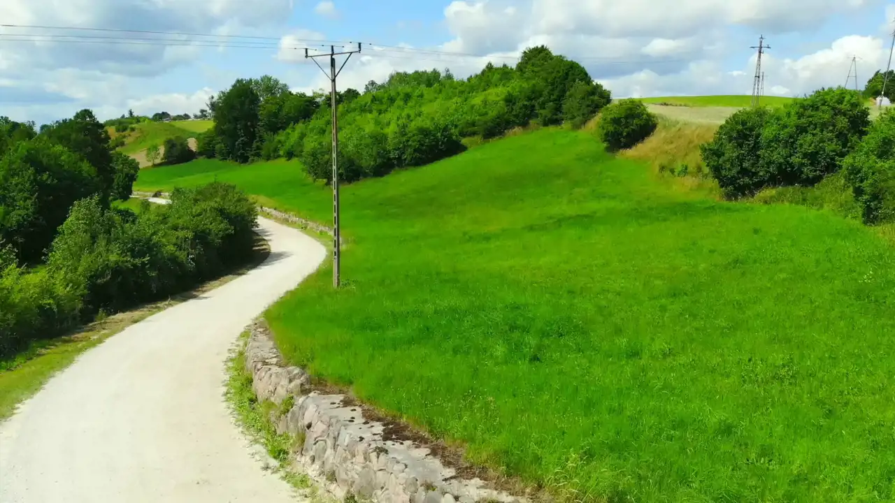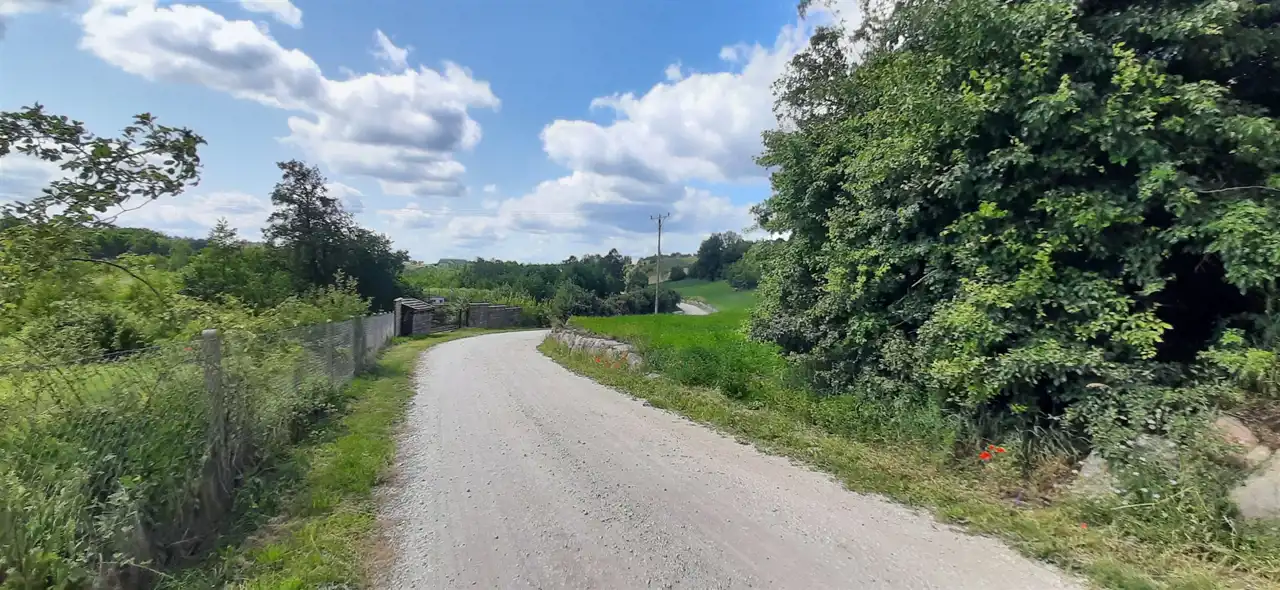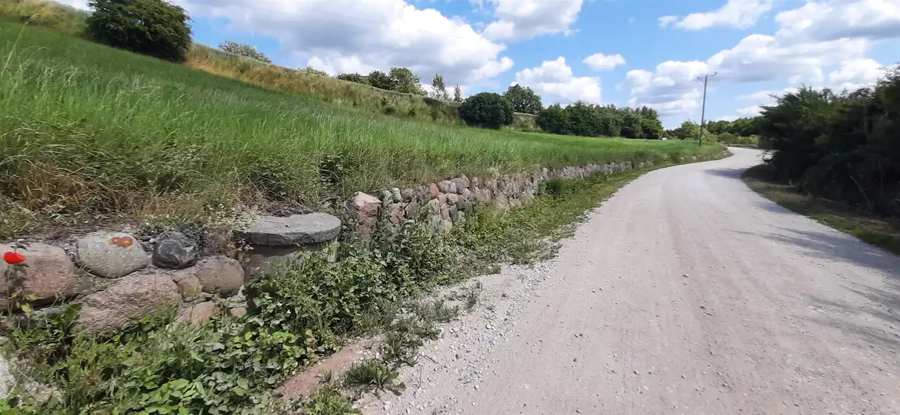 Działka leży wzdłuż utwardzonej drogi, skarpa wzmocniona jest kamieniami co daje bardzo atrakcyjny efekt wizualny.