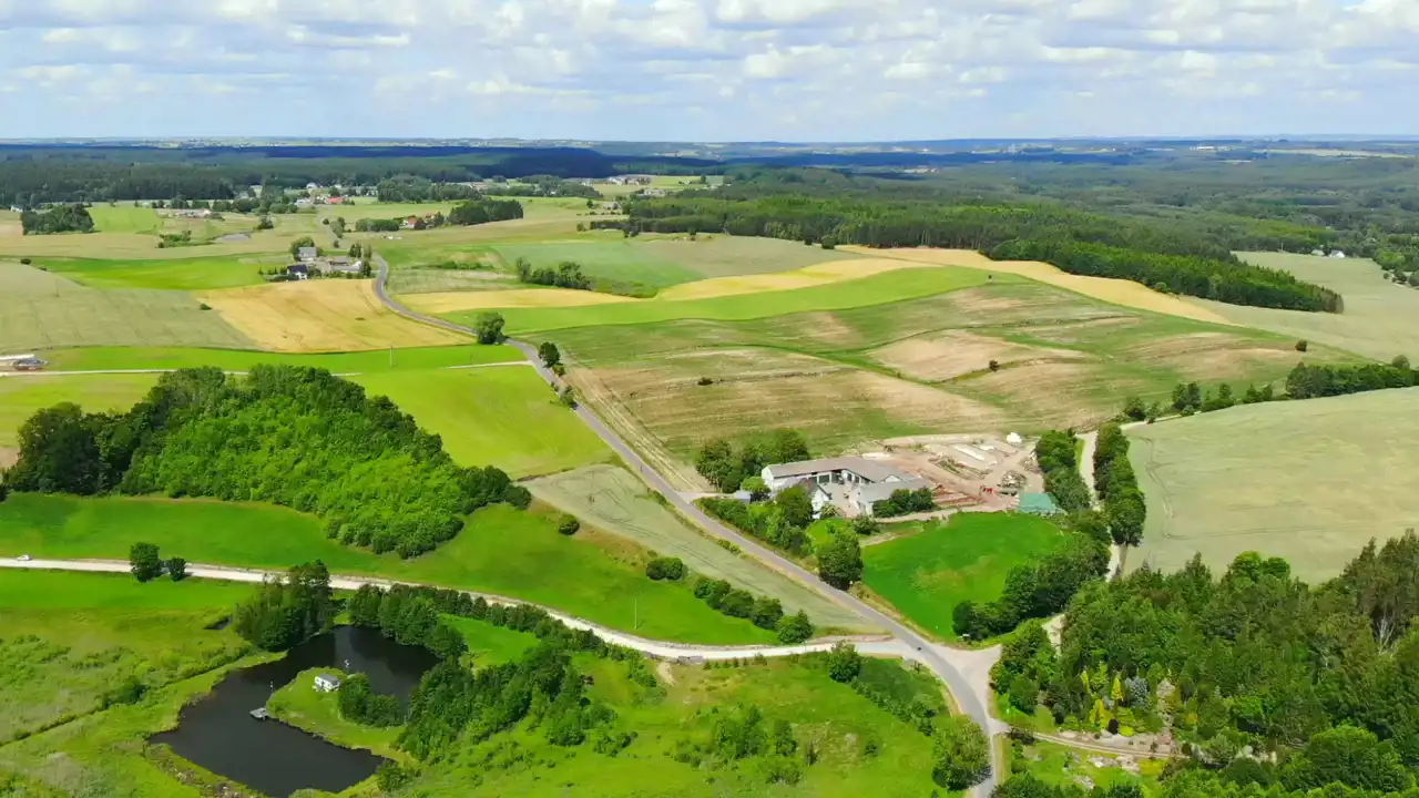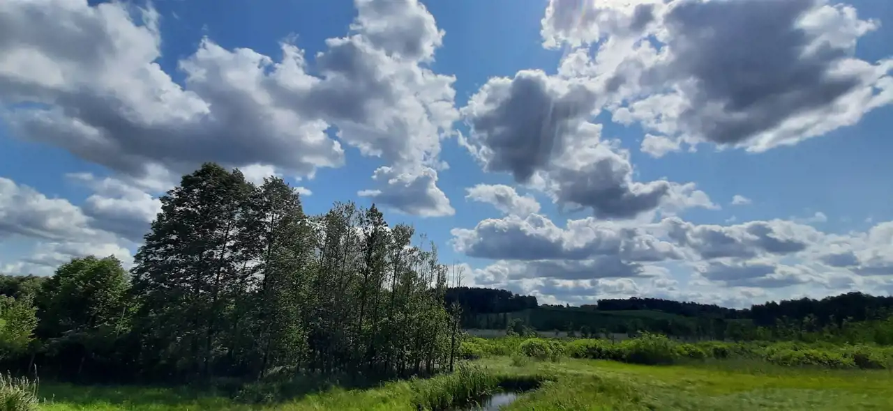 Z nieruchomości rozpościera się widok na stawy i okoliczne wzniesienia.