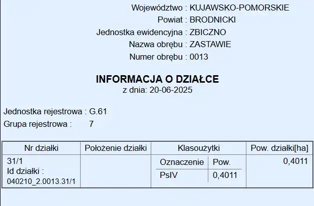 Zapraszamy do zakupu działki w miejscowości Zastawie w gminie Zbiczno.