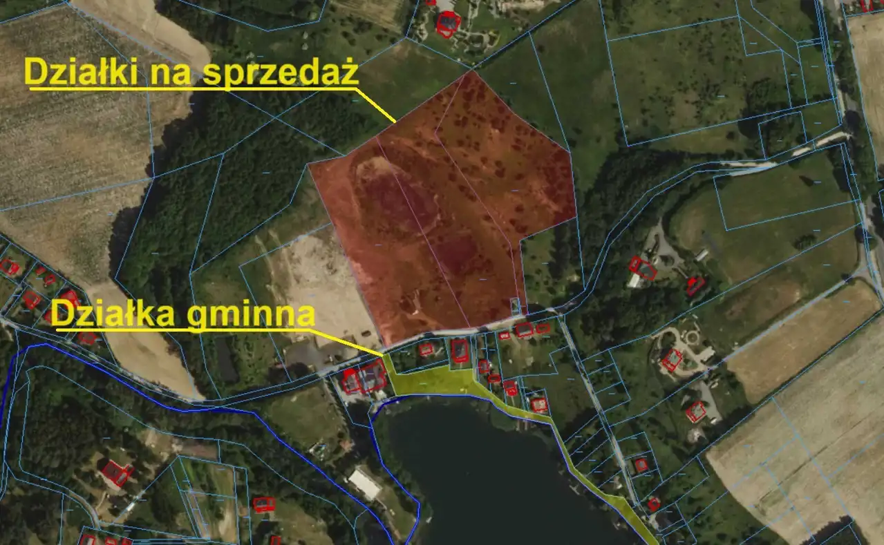 - Zapewniony dostęp do jeziora: działka posiada zapewniony dostęp do jeziora - ogólnodostępna działka gminna zaznaczona na mapie kolorem żółtym.