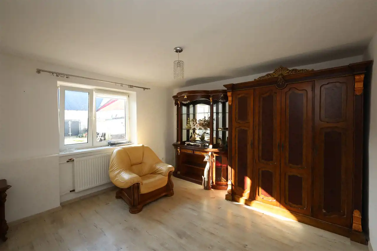 Dom o pow. użytkowej ok. 120 m2, 4 pokoje, po remoncie wewnątrz, wymaga wymiany dachu, odnowienia elewacji oraz podłączenia do zbiornika szczelnego lub wybudowania przydomowej oczyszczalni ekologicznej (możliwość dofinansowania na potrzeby tych inwestycji).