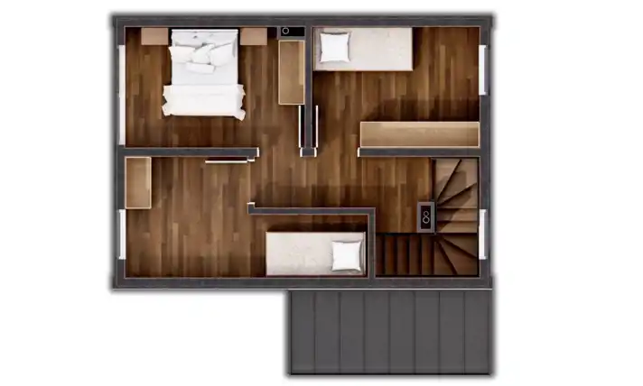 Dom w stylu nowoczesnej stodoły o powierzchni 80 m² to funkcjonalny, nowoczesny projekt idealny dla rodzin poszukujących komfortowej przestrzeni w kompaktowej formie. Jego wyjątkowy układ zawiera aż 4 sypialnie, co czyni go doskonałym rozwiązaniem dla rodzin z dziećmi lub osób potrzebujących dodatkowej przestrzeni na gabinet czy pokój gościnny.