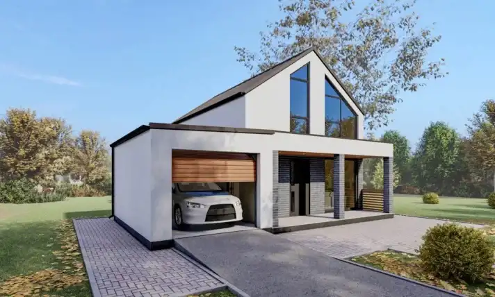 Ten dom zapewni idealne warunki do życia dla Ciebie i Twojej rodziny z niesymetrycznym układem okien, przestronnym garażem z elektryczną bramą, pięknie doświetlonymi przestrzeniami, trzema sypialniami i przestronnym salonem z aneksem kuchennym i wyjściem na taras oraz łazienką i toaletą. Stylowa stodoła z ładnym przeszkleniem i niecodziennym kształtem dodaje mu niepowtarzalnego charakteru. To niezwykłe miejsce, w którym można się zrelaksować i cieszyć życiem. Nowoczesny dom modułowy w technologii drewnianej wykończony do stanu deweloperskiego.