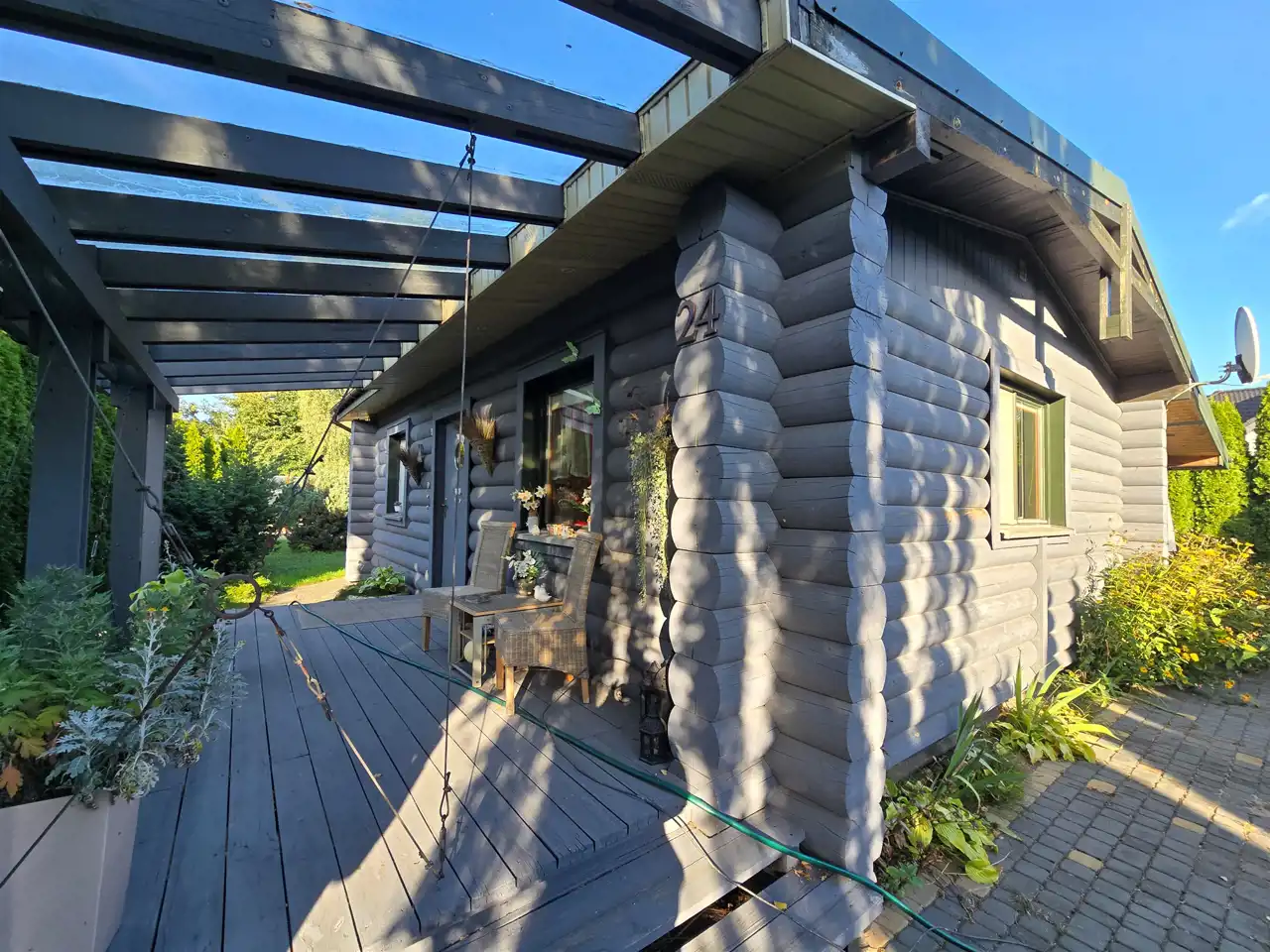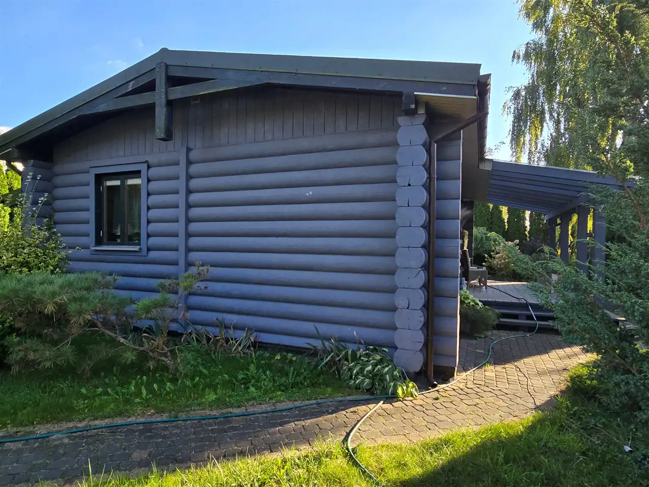 Przykuwający uwagę domek z bala w urokliwej bryle budynku z projektu "Magnus M-Bal".