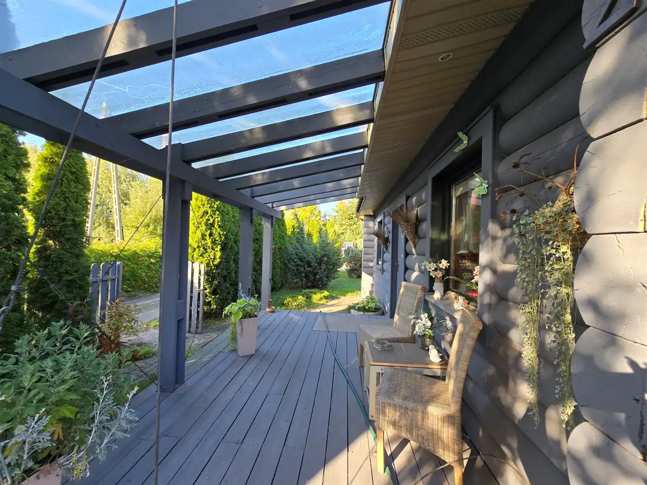 - ściany zewnętrzne z prefabrykowanych bali drewnianych, wypełnionych izolacją termiczną M-Term,