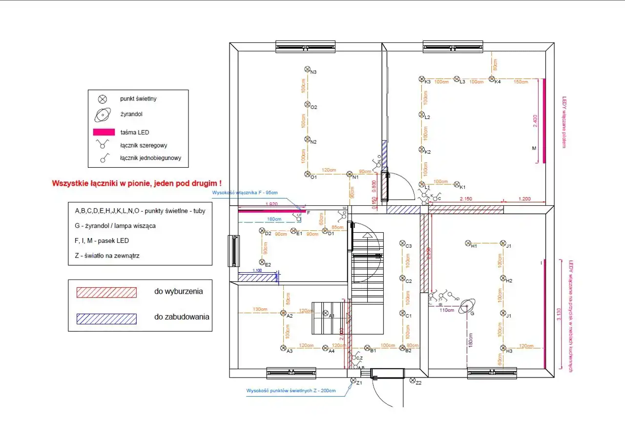 Rozprowadzone zostały również wyjścia pod ogrzewanie podłogowe, alarm i monitoring oraz bramę elektryczną. Internet - światłowód ,,Księżyc” w budynku.