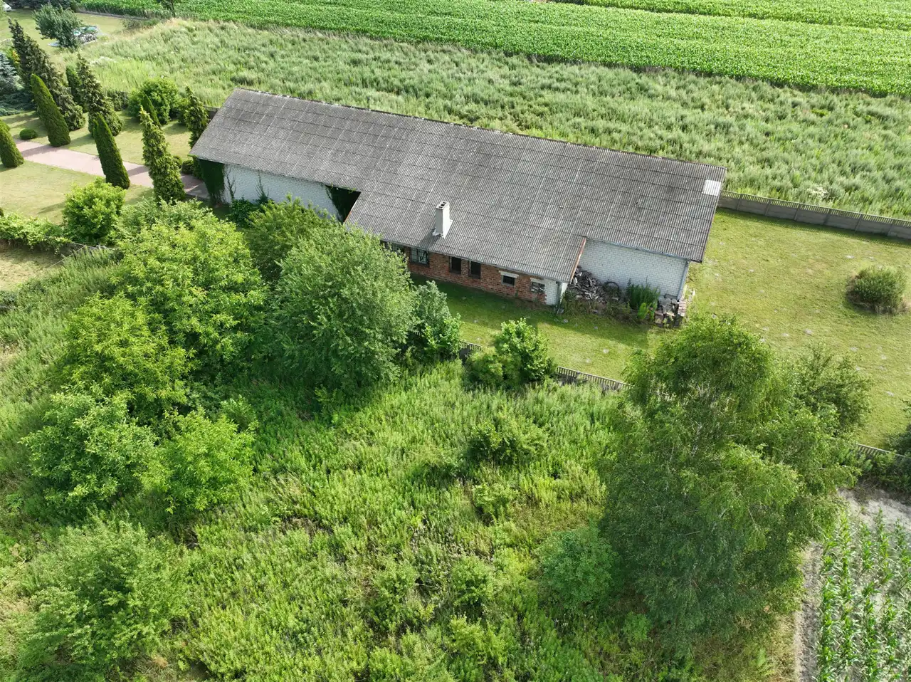 Na nieruchomości znajduje się budynek mieszkalny oraz zabudowa produkcyjno - magazynowa.