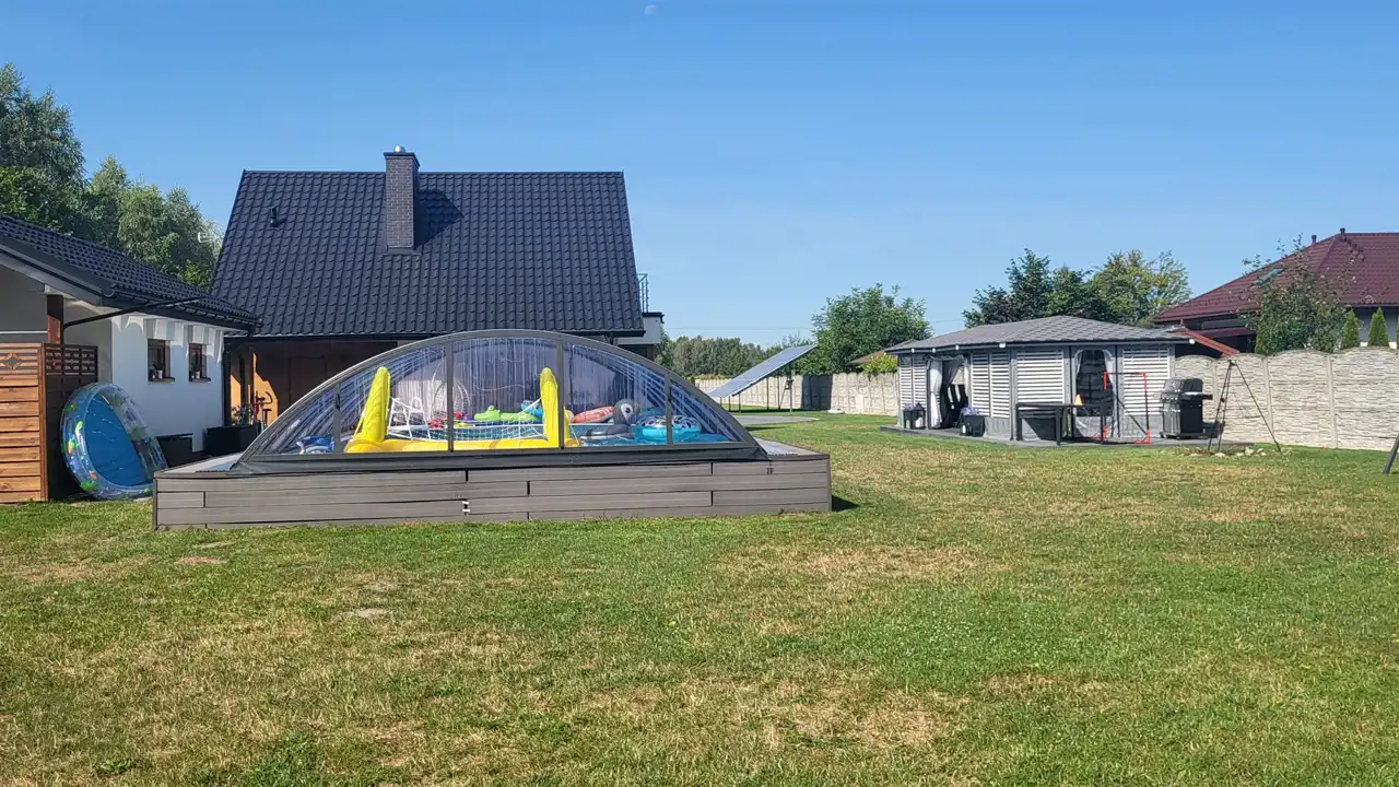 Całość zabudowana budynkiem mieszkalnym o pow 73,16m2. Na działce znajduje się również altana i zadaszony basen. Garaż o powierzchni 25m2. Wjazd na działkę z automatyczną bramą kutą, licznymi miejscami parkingowymi i rondem na posesji.