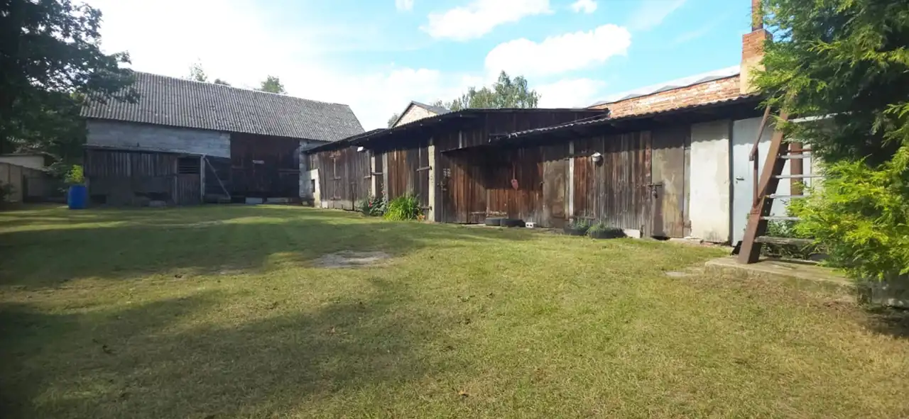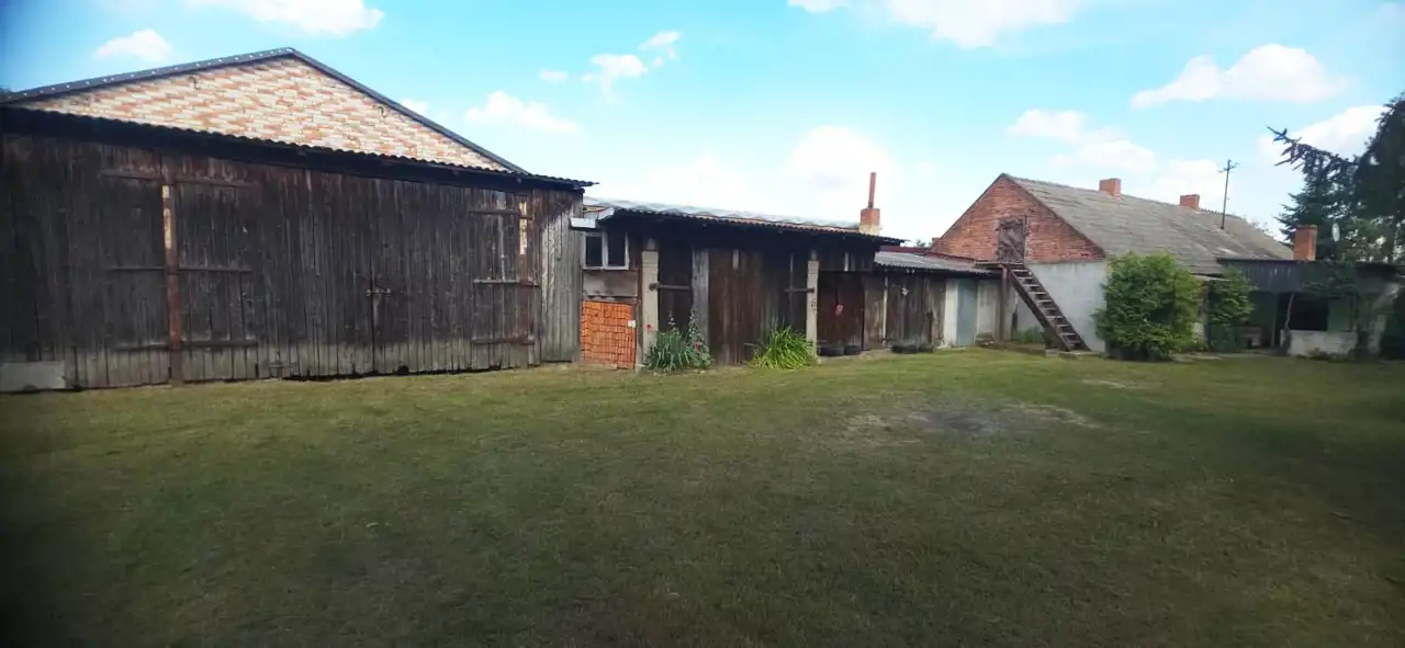 Na działce znajdują się również pomieszczenia gospodarcze oraz murowana stodoła z drewnianymi drzwiami garażowymi o powierzchni około 200 m2. Wybudowane w latach 80' z pustaka, na dachu eternit.