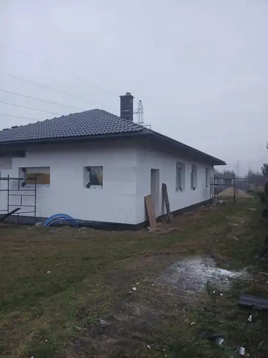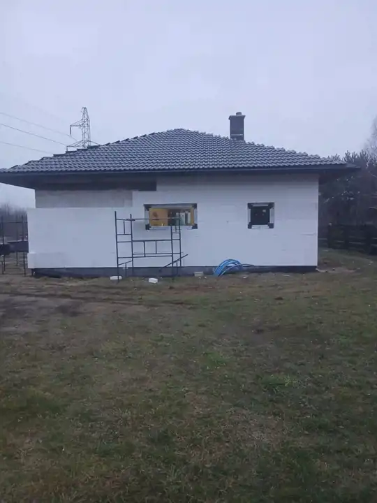 Ocieplenie budynku styropianem 20 cm +tynk silikonowy+ podbitka.