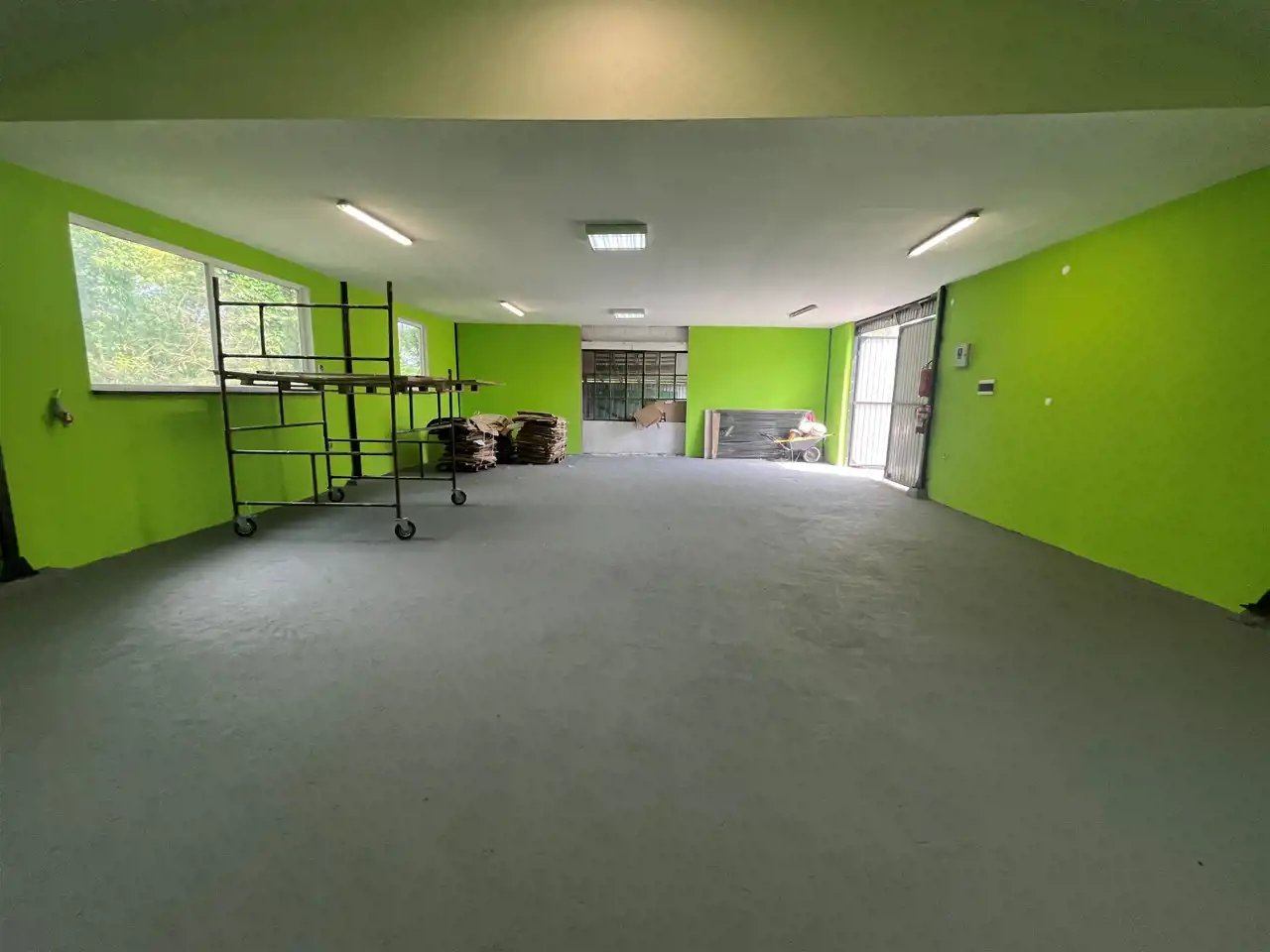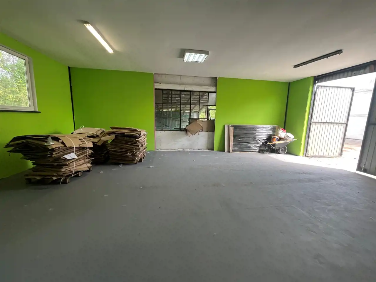 Hala po remoncie jest ocieplona, wylana nowa posadzka, oświetlenie, nowa elektryka, siła.