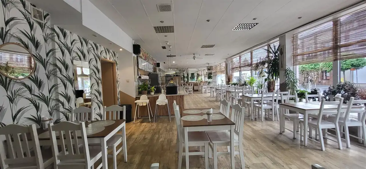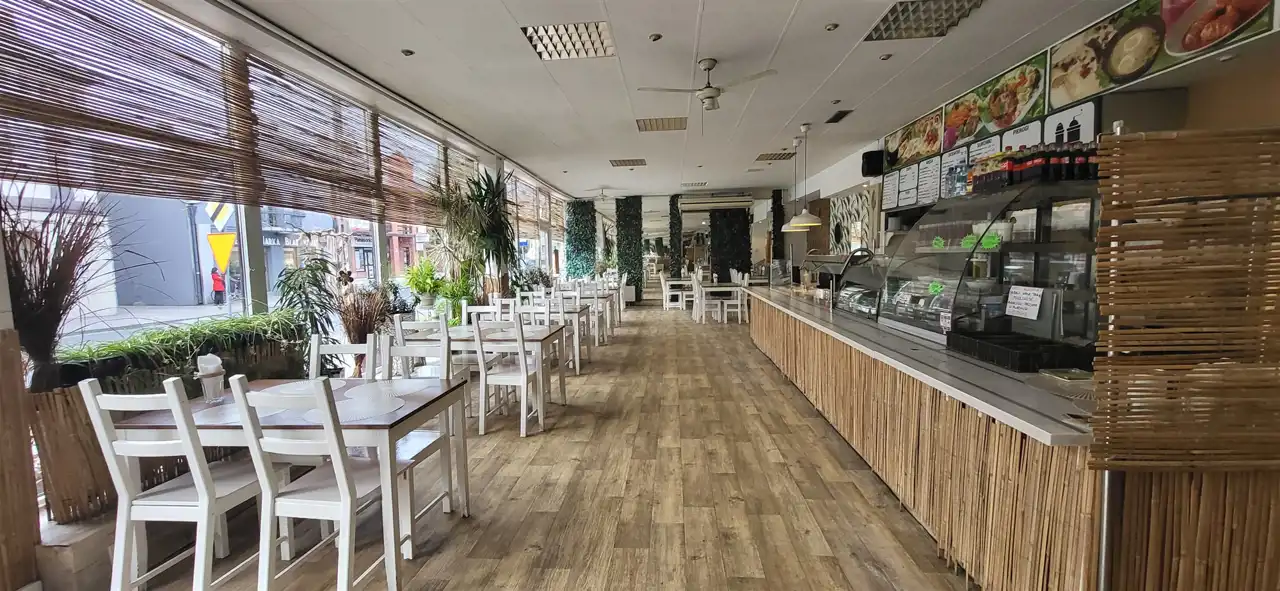 Lokal (200m2) składa się z dużego pomieszczenia (sali konsumpcyjnej 100m2), zaplecze (100m2), dwóch toalet przeznaczonych dla klientów i personelu, zaplecze kuchenne z pełnym wyposażeniem dla gastronomii, pełne zaplecze socjalne.