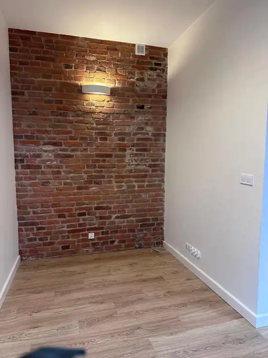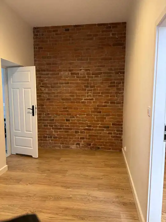 W lokalu nowy sprzęt AGD, nowe okna, drewniane drzwi dodające uroku, oryginalna cegła na ścianach.