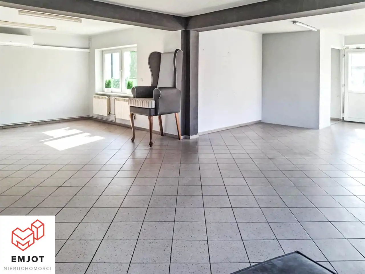 Na zapleczu znajdują się pomieszczenia sanitarne, biurowe oraz kotłownia jest to część wspólna