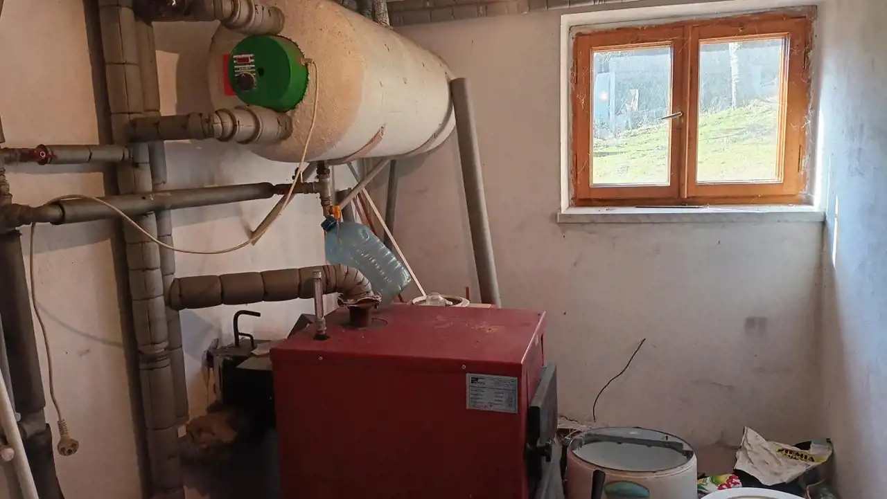 Dom o powierzchni całkowitej 295 m² (użytkowej ok. 180 m²) został wybudowany w latach 80. w tradycyjnej technologii z pustaka. Budynek posiada trzy kondygnacje: piwnice, parter i piętro, a dodatkowo strych z możliwością adaptacji. Dach pokryto eternitem, ściany zewnętrzne otynkowano (bez ocieplenia styropianem, wykonano jednak dylatację wewnątrz ścian). Ogrzewanie centralne na paliwo stałe.