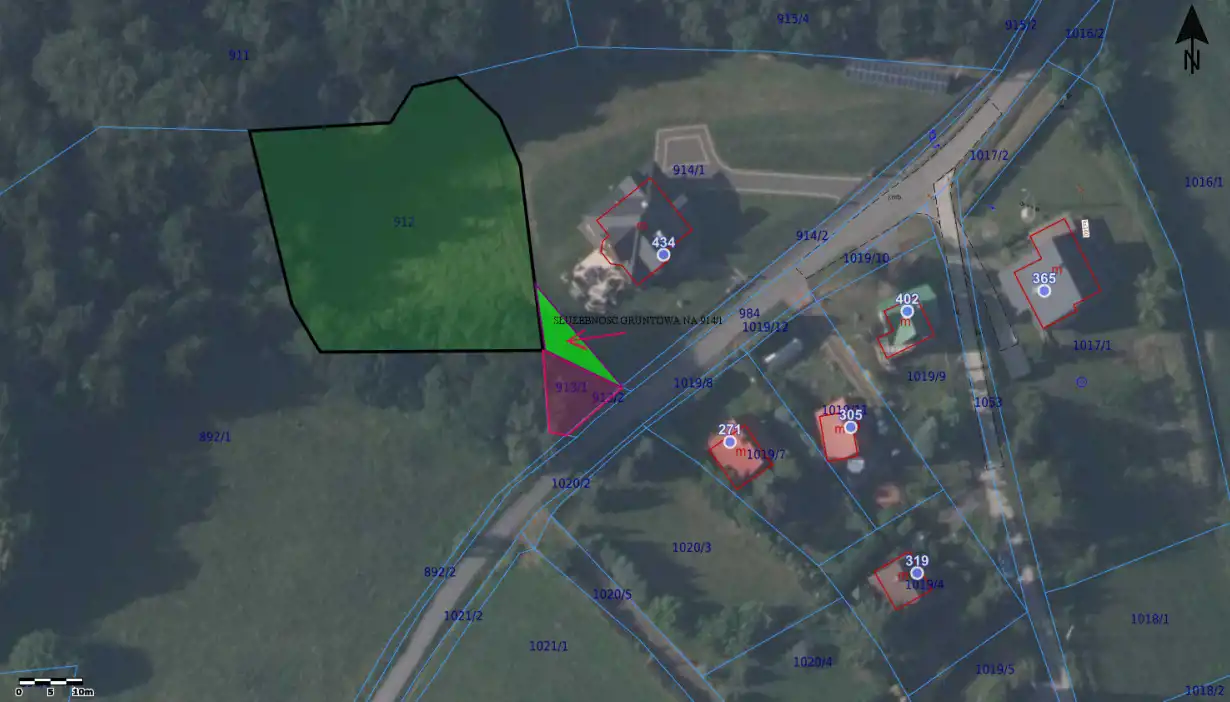 - Działka Niezagospodarowana, lekko nachylona, wielokąt