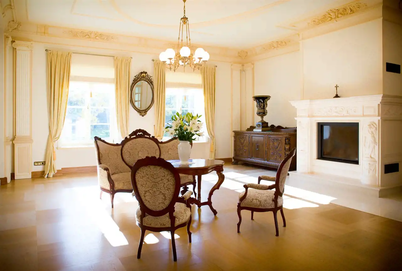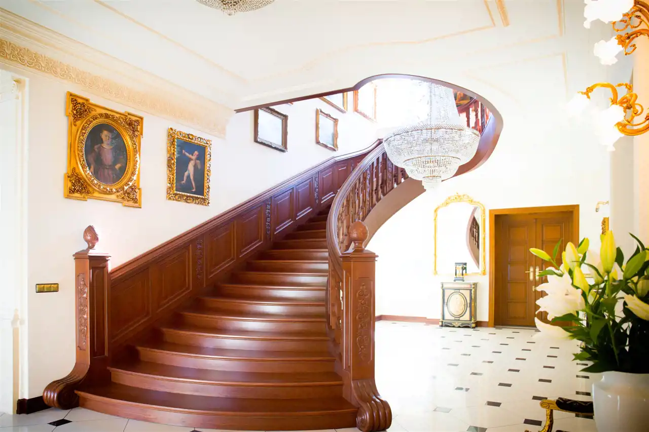 Właściciele ze szczególnym pietyzmem odrestaurowali wnętrza na wzór z połowy XIX wieku na które składa się: wyjątkowa sztukateria, lampy, żyrandole, meble i antyki. Dzięki temu pozwala to na przeniesienie się do historycznych wnętrz z tamtego okresu świetności dworu.