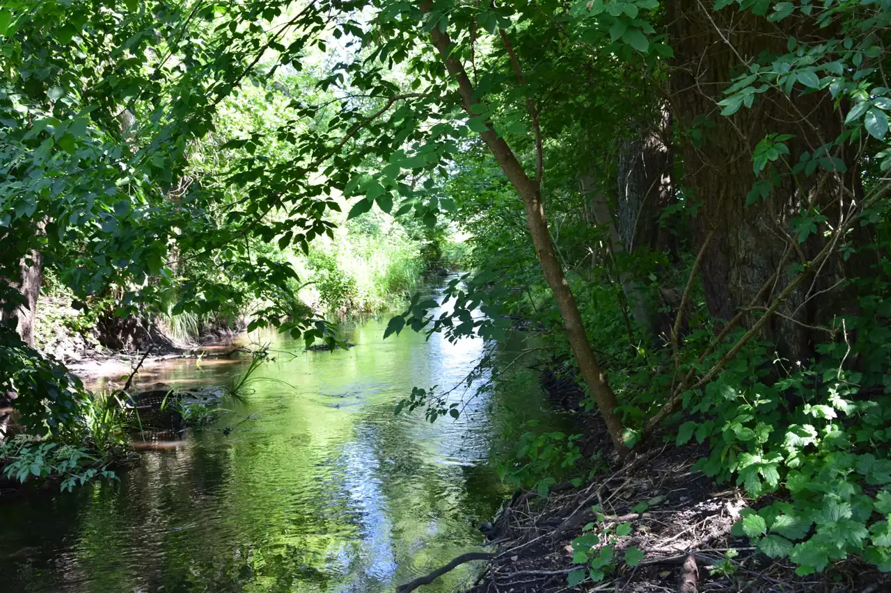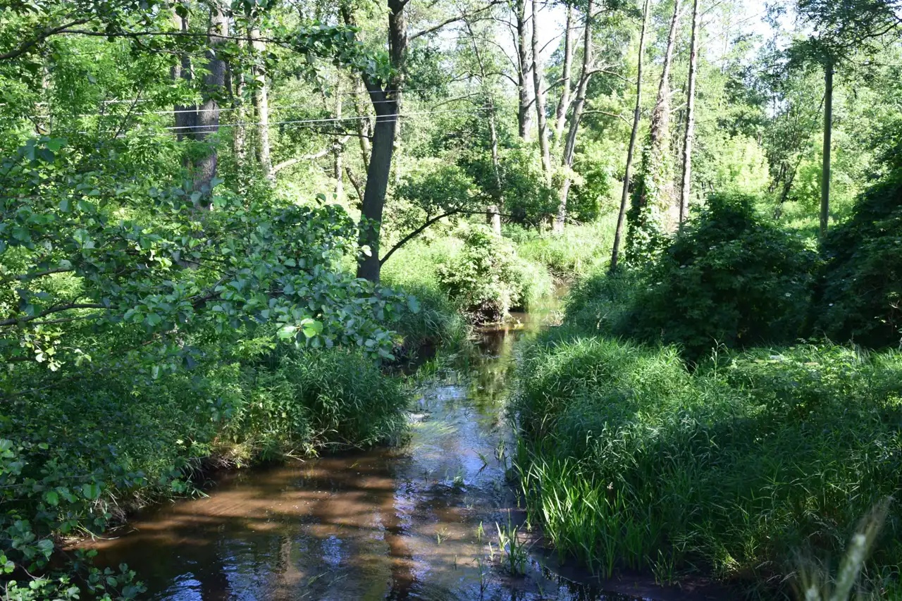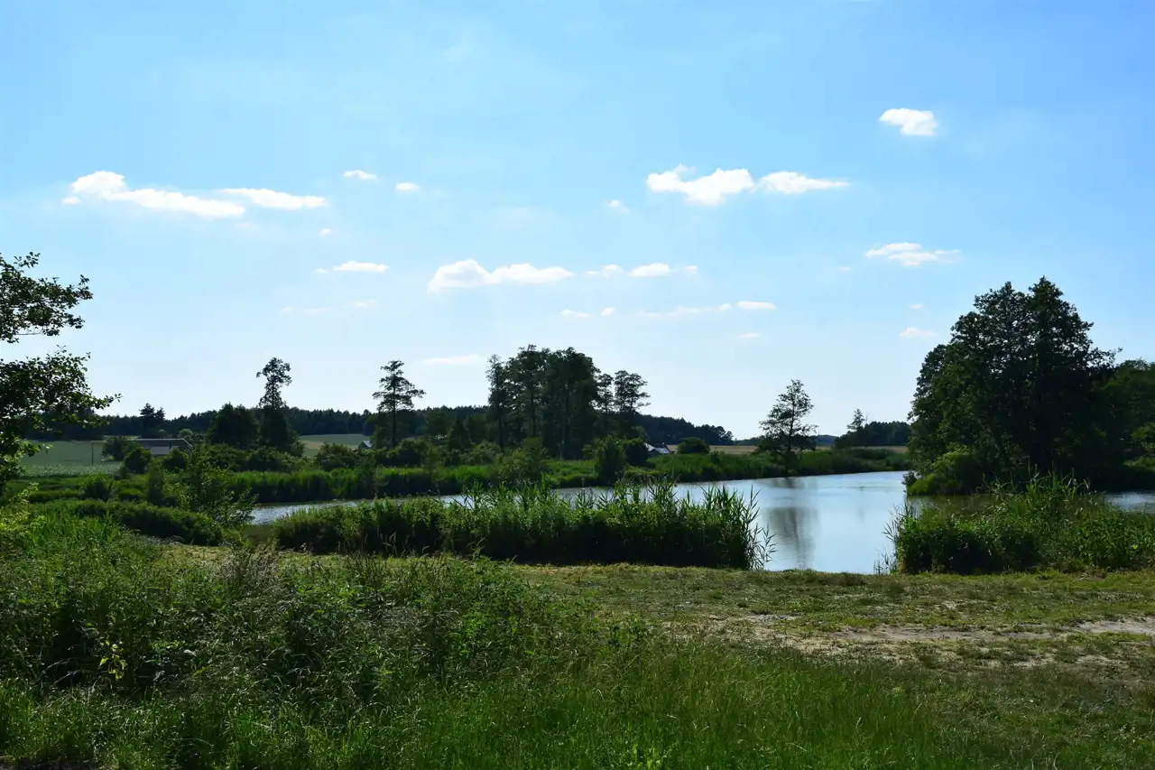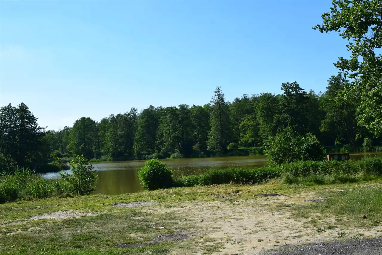 - naturalny podział działek to tama i płynąca rzeka :)
